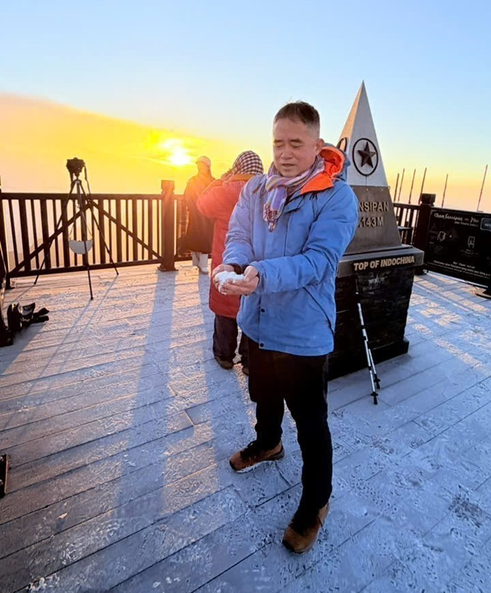 Du khách thích thú khi được trải nghiệm băng giá trên đỉnh Fansipan.