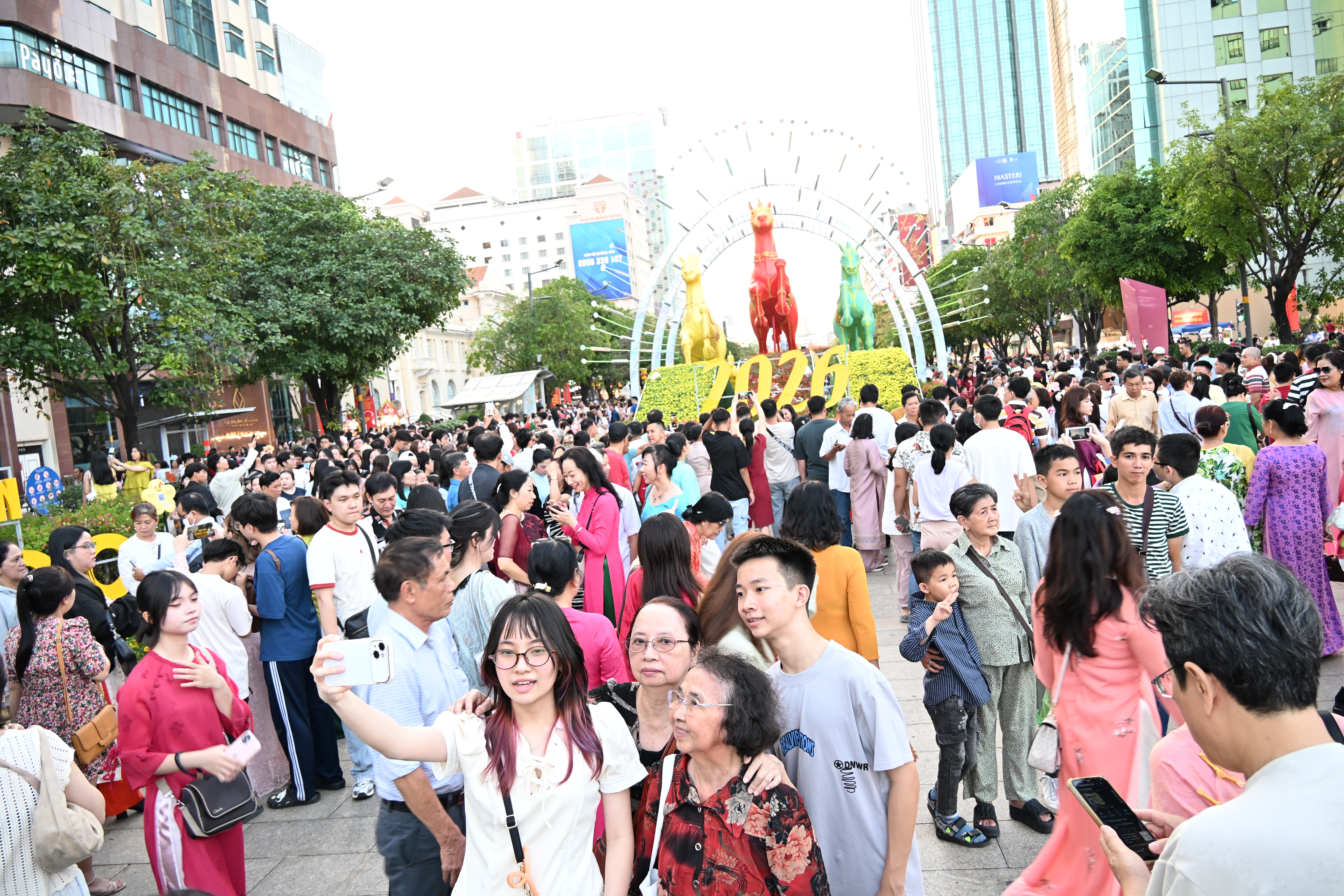 Đông đảo người dân vui Tết Bính Ngọ năm 2026 ở Đường hoa Nguyễn Huệ. (Ảnh: VIỆT DŨNG)