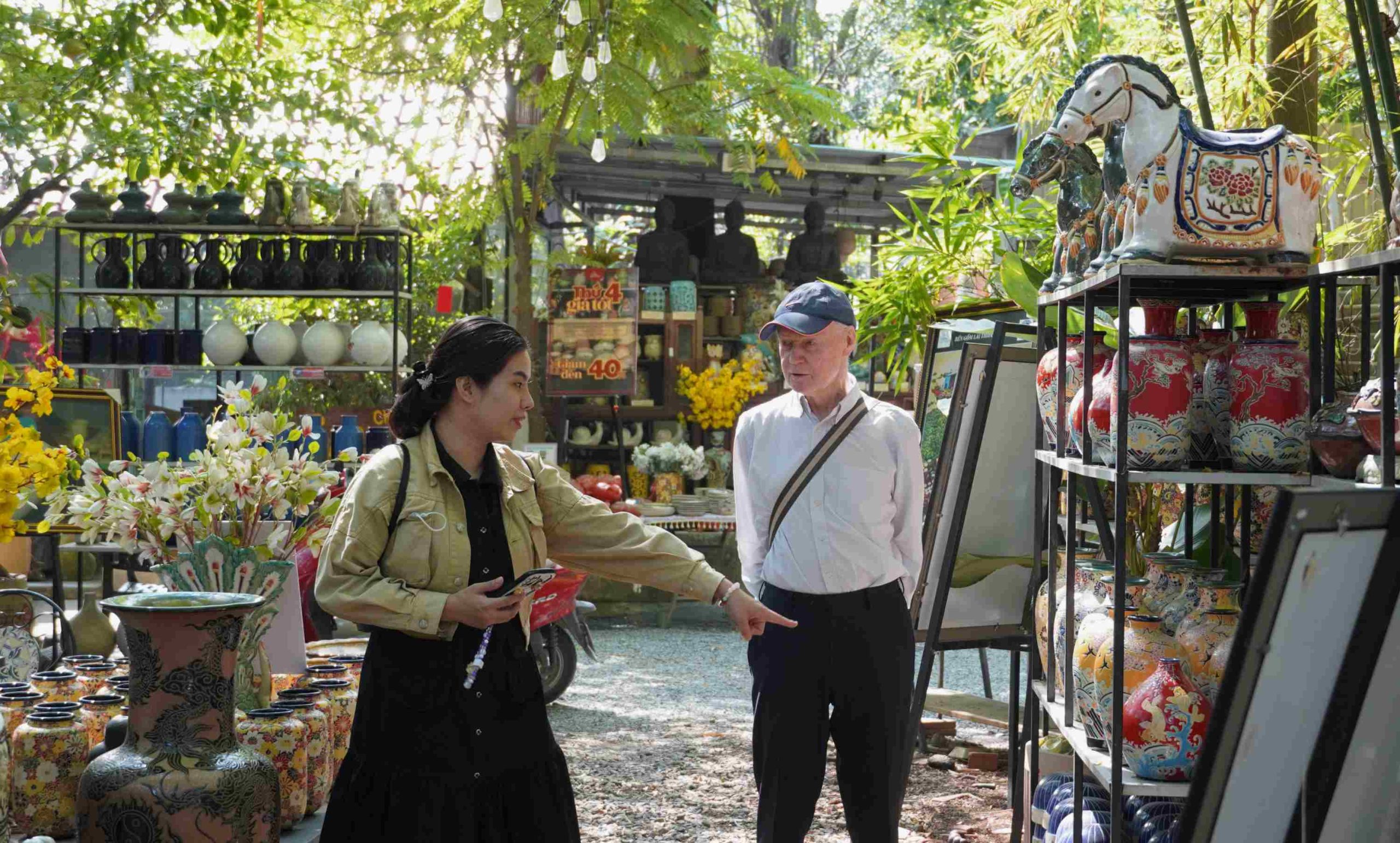 Du khách quốc tế tại phường Lái Thiêu, TPHCM. Ảnh: Nguyên Phong