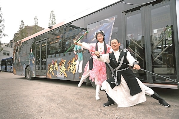 Chiếc xe buýt du lịch mang tên “Hiệp nghĩa Tương Dương”, do Tập đoàn Xe buýt Tương Dương kỳ công thiết kế, chính thức ra mắt vào ngày 1.10, trở thành chiếc xe buýt đầu tiên tại Trung Quốc lấy đề tài võ hiệp Kim Dung làm chủ đạo, đồng thời kết hợp đặc sắc văn hóa bản địa của Tương Dương.