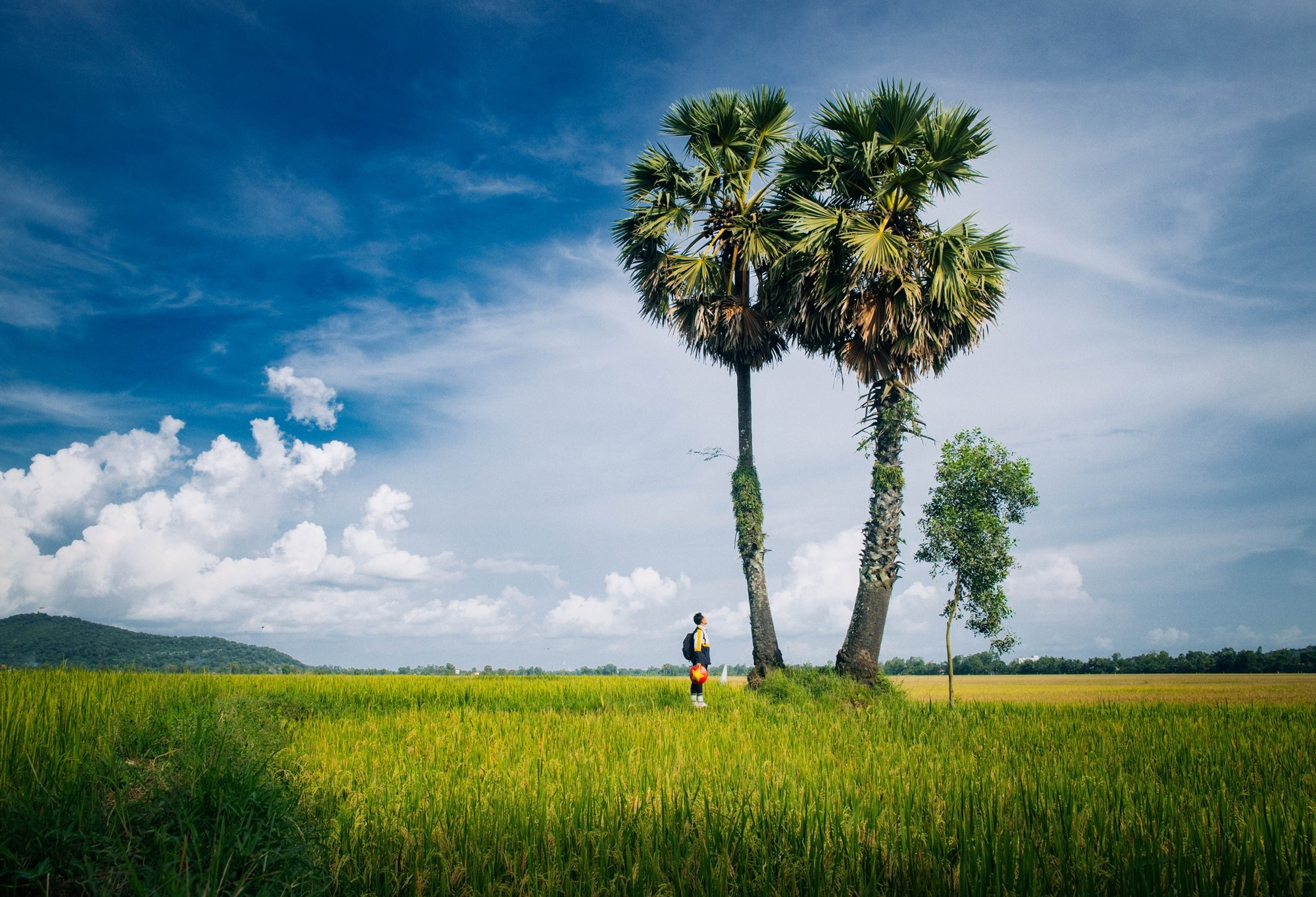 Du khách chụp với cây thốt nốt, một "đặc sản" ở An Giang. (Ảnh: Vương Nam/Vietnam+)