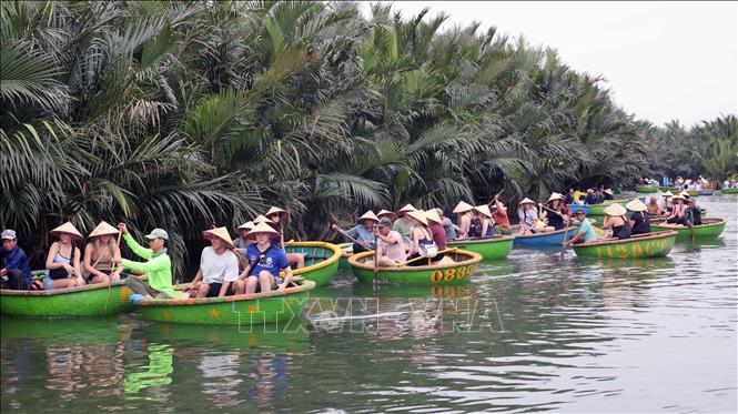Rừng dừa Bảy Mẫu ở phường Nam Hội An, thành phố Đà Nẵng thu hút rất đông du khách đến trải nghiệm. Ảnh: Kha Phạm/TTXVN