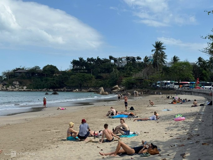Du khách nghỉ ngơi và tắm nắng tại Khánh Hòa trong kỳ nghỉ Tết. Ảnh: Bùi Toàn