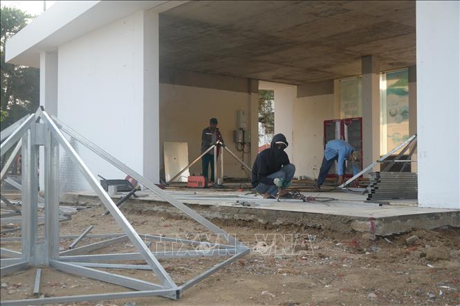 Chỉnh trang, sửa chữa các hubway ven biển chuẩn bị đón khách. Ảnh: Việt Hoàng - TTXVN