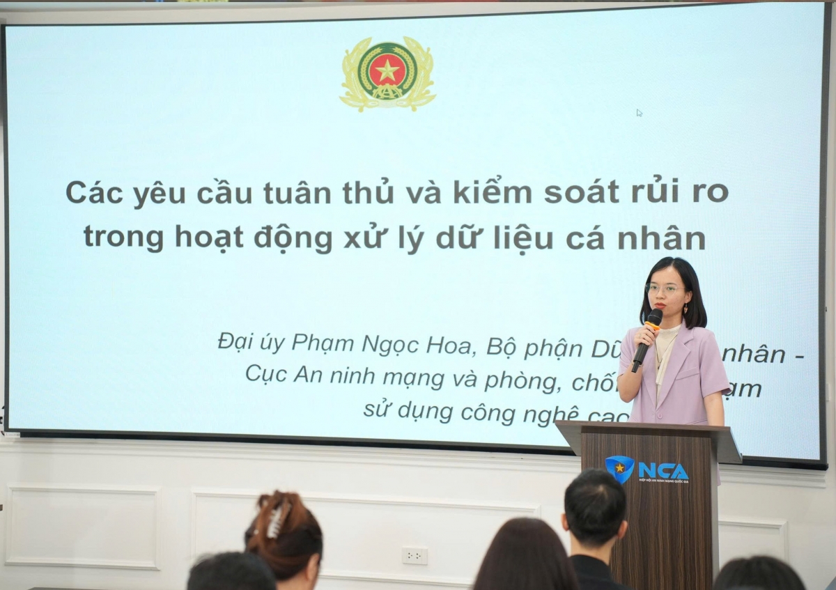 Chia sẻ bên lề hội thảo, Đại úy Phạm Ngọc Hoa, Bộ phận Dữ liệu cá nhân, Cục An ninh mạng và phòng, chống tội phạm sử dụng công nghệ cao nhận định, tuân thủ Luật Bảo vệ dữ liệu cá nhân của các doanh nghiệp còn gặp nhiều vướng mắc.