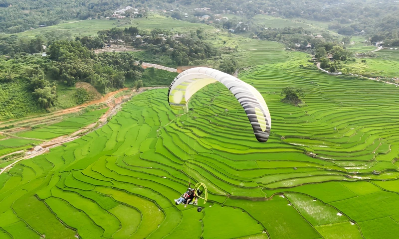 Dù lượn bay trên cảnh sắc tuyệt đẹp của xã Pù Luông.