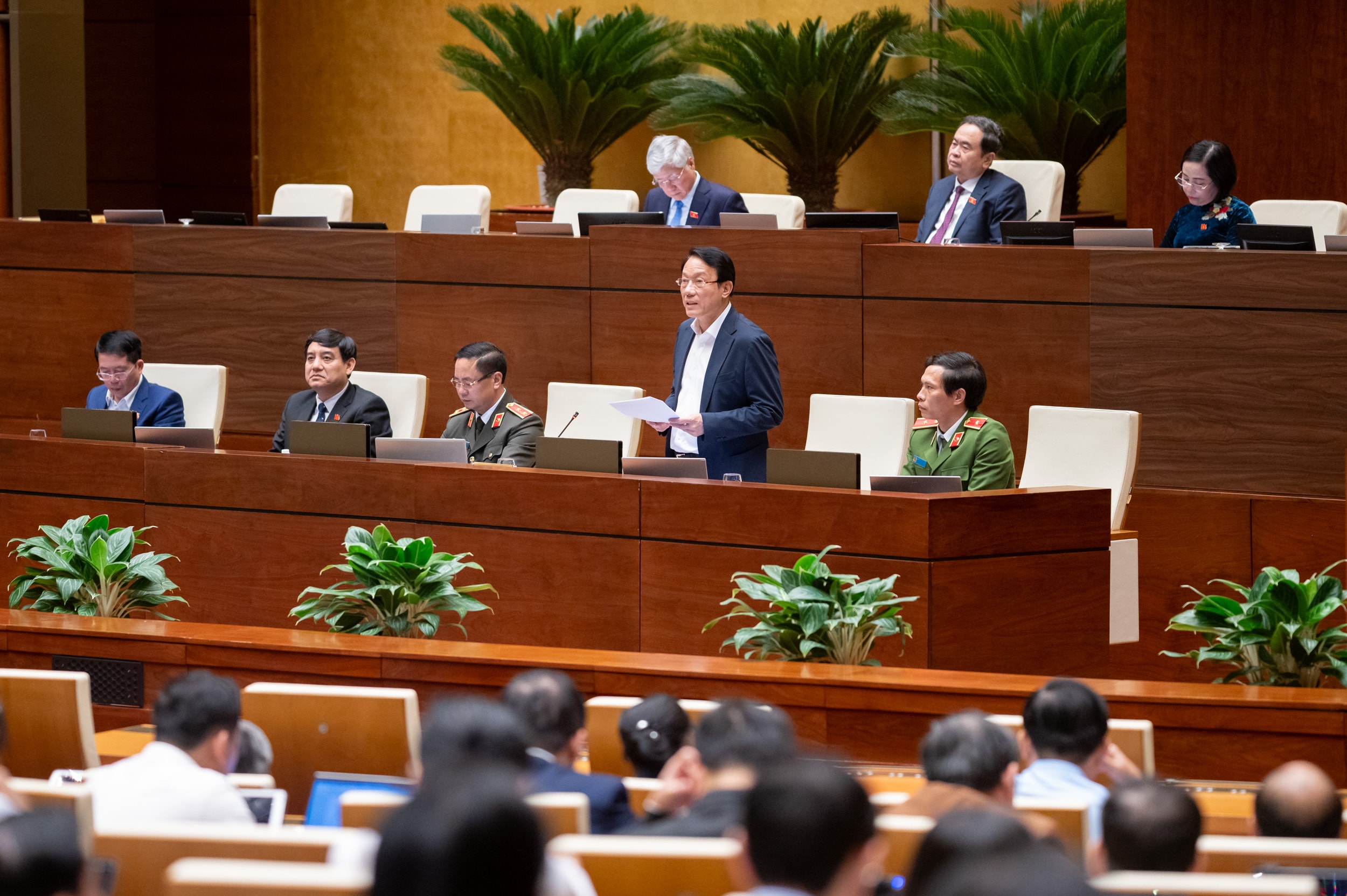 Bộ trưởng Bộ Công an, Đại tướng Lương Tam Quang giải trình, làm rõ một số vấn đề đại biểu Quốc hội nêu. Ảnh: Phạm Thắng