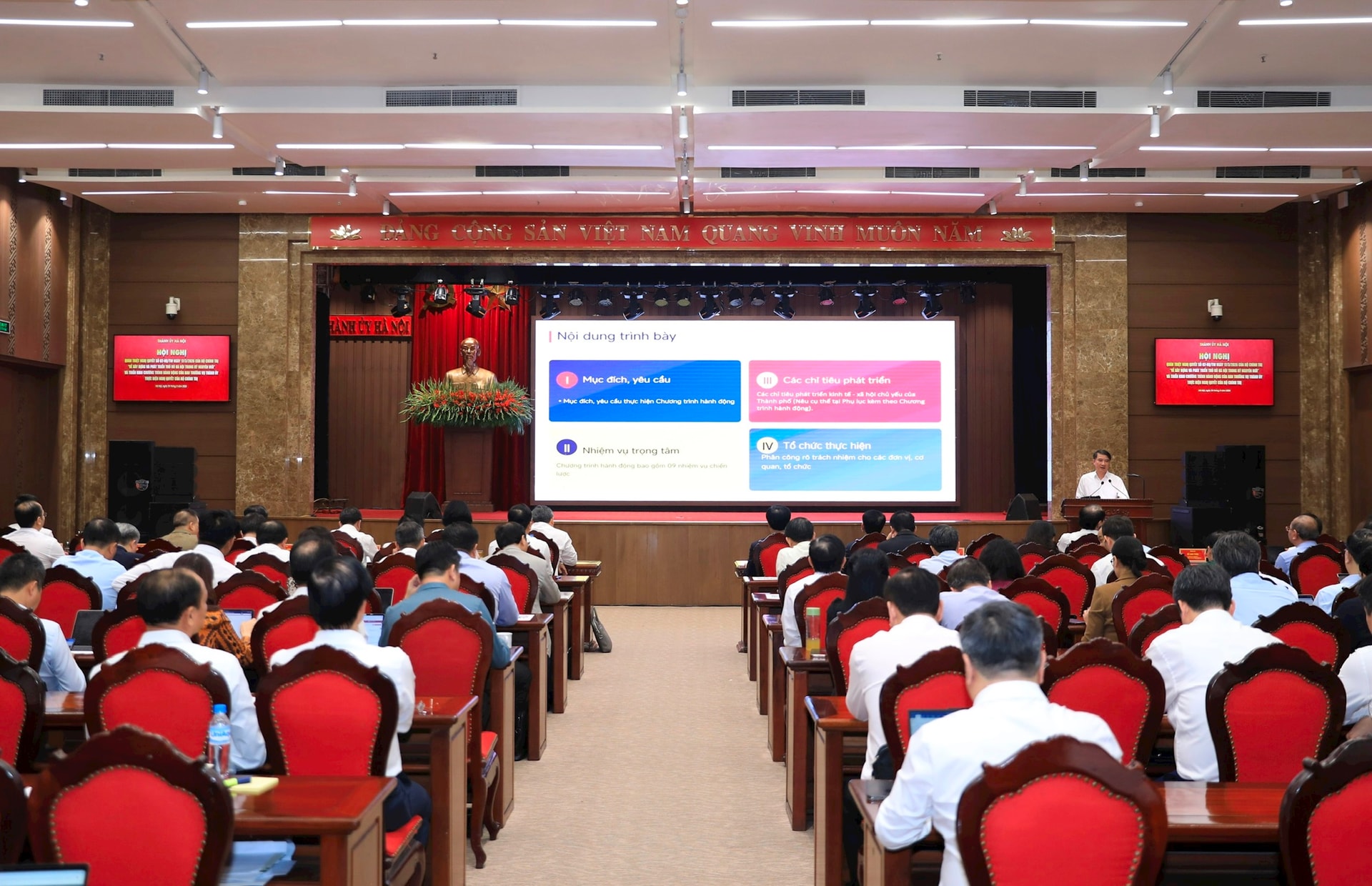 Quang cảnh hội nghị tại điểm cầu Thành ủy Hà Nội. Ảnh: Quang Thái