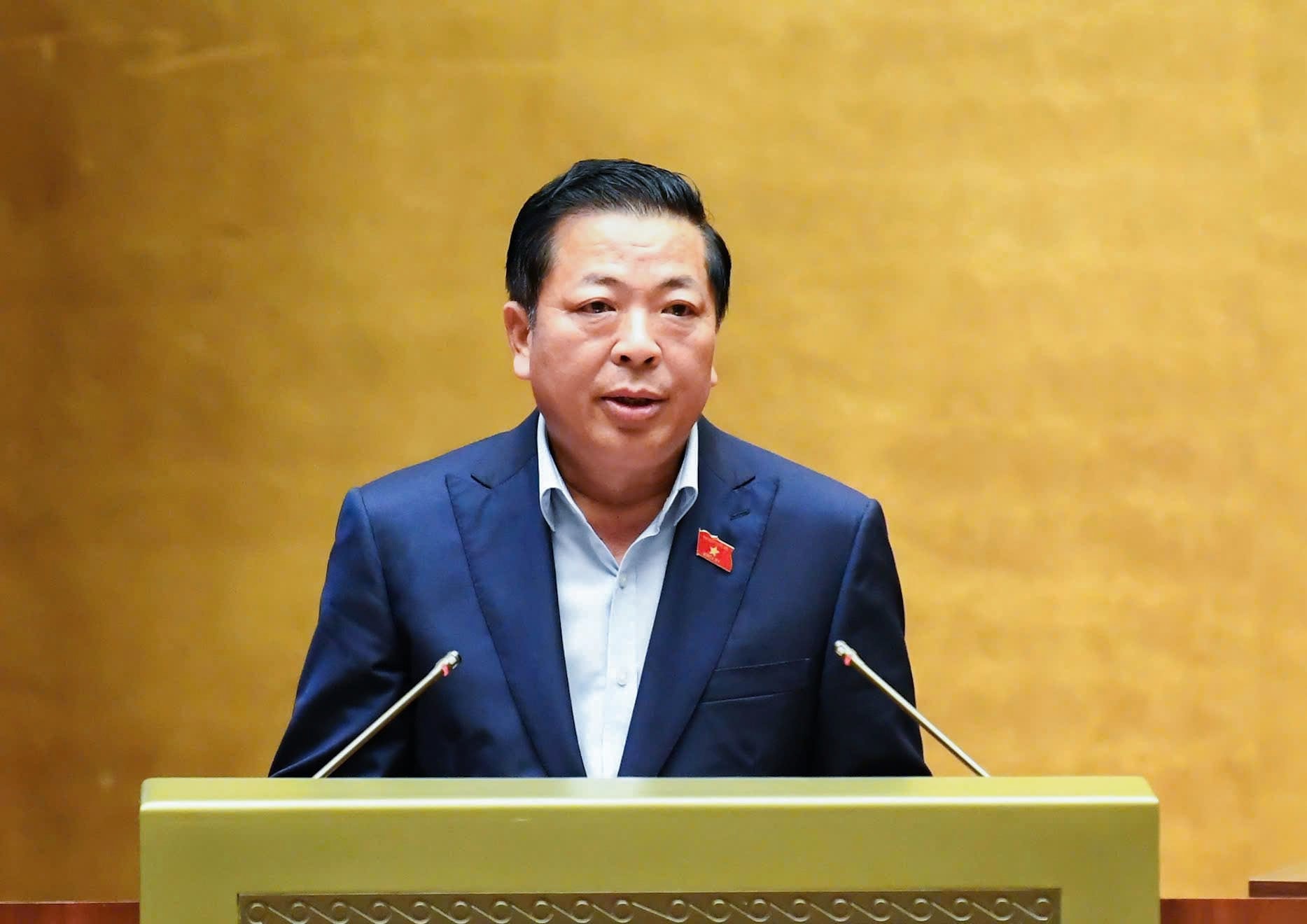 Bộ trưởng Bộ Xây dựng Trần Hồng Minh phát biểu làm rõ các nội dung được ĐBQH quan tâm. Ảnh: Quang Khánh