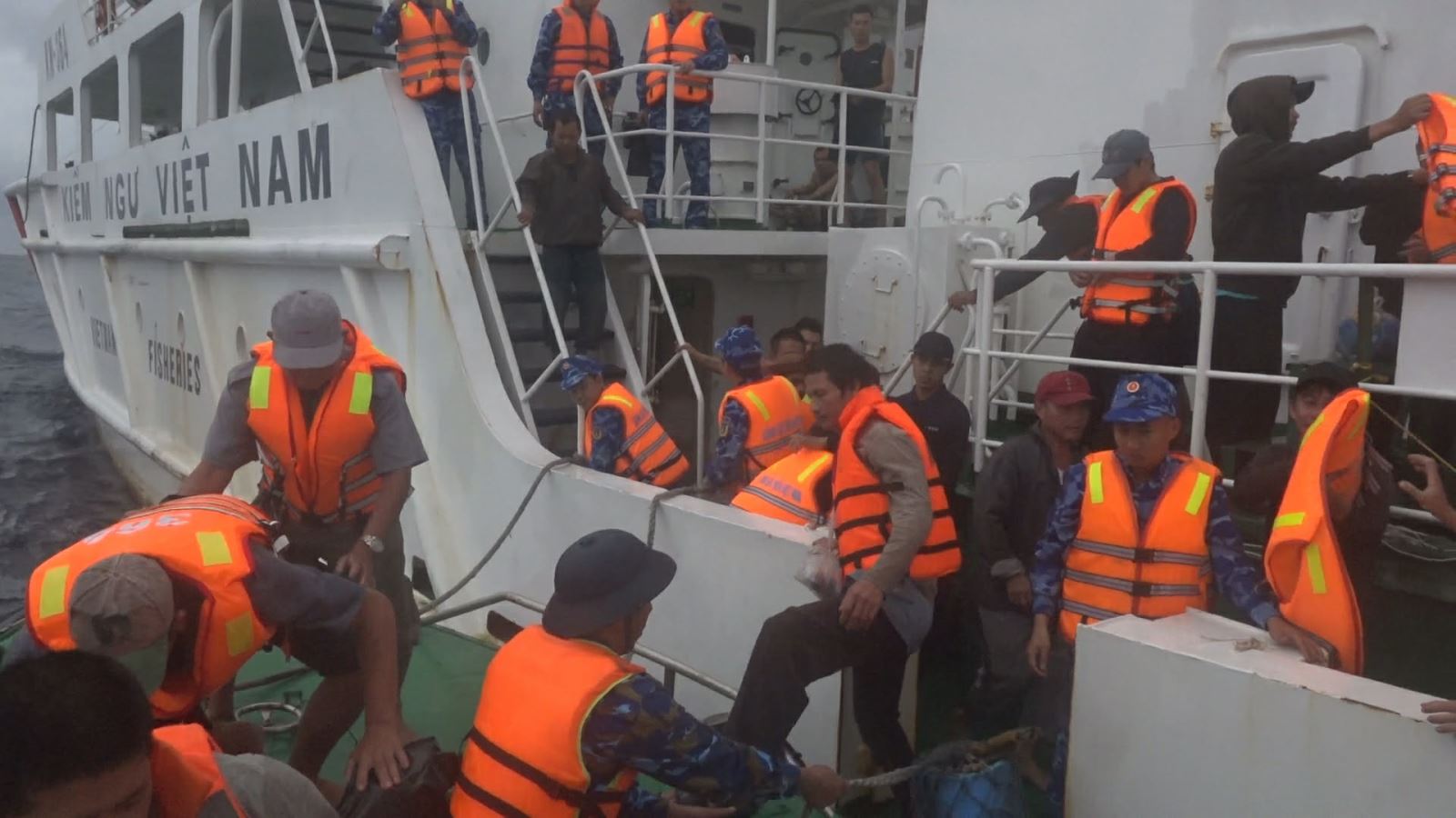 Đến 7h ngày 19/12 đảo Song Tử Tây đã tổ chức 1 kíp xuồng do đồng chí Trung tá Nguyễn Văn Chiến, Phó Chỉ huy trưởng chỉ huy tiếp cận tàu KN364 của BTL Cảnh sát biển tiếp nhận 52 ngư dân bị nạn đưa vào đảo an toàn.