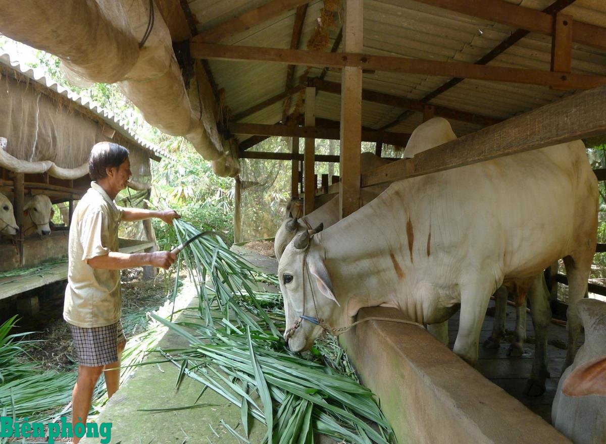 Từ nguồn vốn vay của Ngân hàng Chính sách xã hội tỉnh An Giang, ông Châu Chia đã đầu tư nuôi bò mang lại nguồn thu nhập cho gia đình. Ảnh: Phan Bình