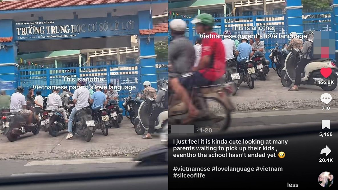 Trên TikTok, một đoạn video của du khách nước ngoài ghi lại khoảnh khắc nhiều phụ huynh đợi con tan học trước cổng trường gây chú ý, thu hút hàng triệu lượt xem. Du khách này viết rằng "Đây là một loại 'ngôn ngữ tình yêu' khác của người dân Việt Nam. Tôi thấy khá dễ thương khi chứng kiến nhiều phụ huynh đứng đợi để đón con của họ, dù cho giờ học vẫn chưa kết thúc".
