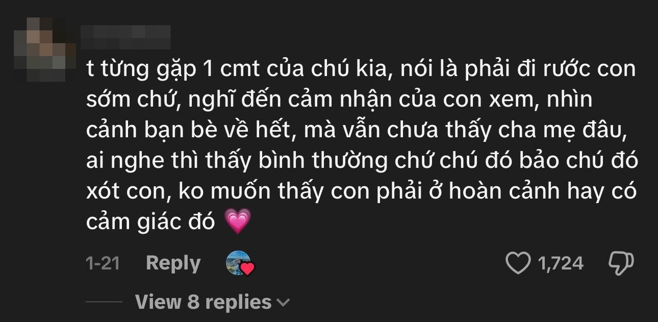 Dưới phần bình luận, cư dân mạng chia sẻ nhiều câu chuyện tuổi thơ của bản thân, thời còn được bố mẹ đưa đón đi học. Ngoài ra, một số bình luận khác từ người nước ngoài tỏ ra bất ngờ với nét sinh hoạt này của người Việt. Bởi lẽ theo một số chia sẻ, người phương Tây có xu hướng tự lập hơn, thường đi bộ hoặc dùng phương tiện công cộng để đến trường thay vì được bố mẹ, người lớn đưa đón mỗi ngày. Có người đùa rằng nhiều khả năng các bậc phụ huynh phải đến chờ sớm để tránh con của họ... "cúp tiết", lẻn đi chơi trong giờ học.