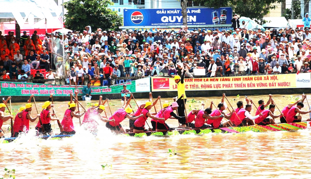 Khi các đội đua bước vào thi đấu, tiếng trống cùng tiếng reo hò cổ vũ của hàng ngàn khán giả khiến bầu không khí thêm sôi động, náo nhiệt