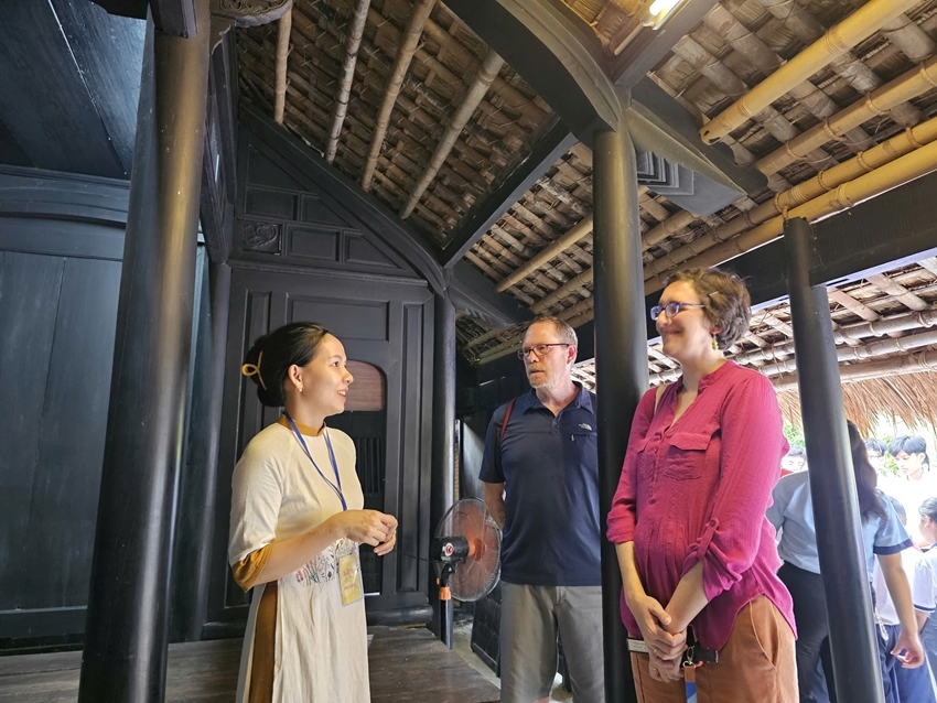 Du khách nước ngoài tham quan di tích Bác Hồ ở làng quê Dương Nỗ
