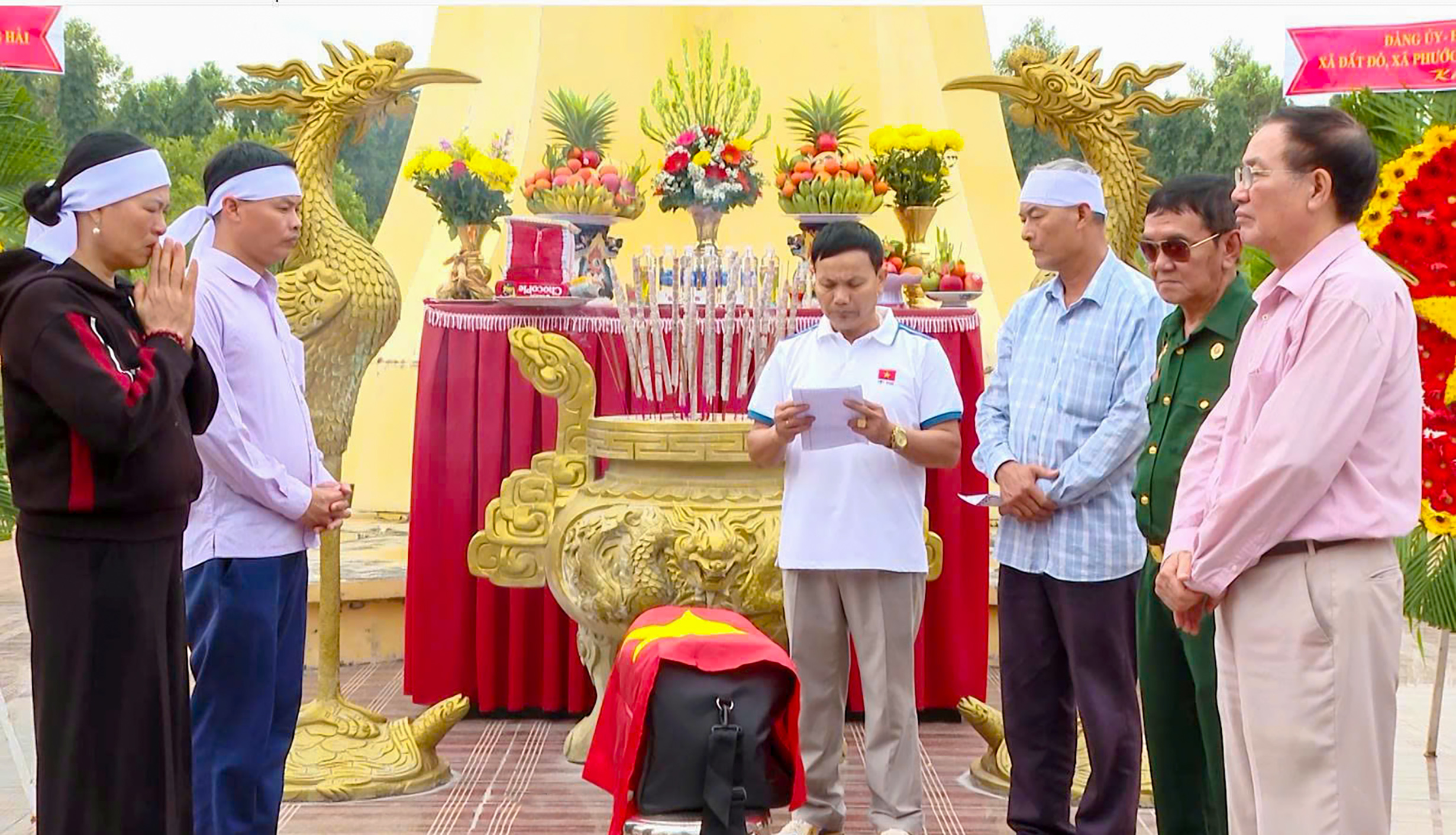 Ngày 23-12, trong không khí trang nghiêm và xúc động, tại Nghĩa trang Liệt sĩ liên huyện Đất Đỏ - Long Điền (xã Đất Đỏ, TPHCM), Hội hỗ trợ gia đình liệt sĩ TPHCM phối hợp cùng thân nhân và chính quyền địa phương tổ chức lễ cất bốc, tiễn đưa hài cốt liệt sĩ Lê Văn Quang về an táng tại quê nhà sau 42 năm xa cách.