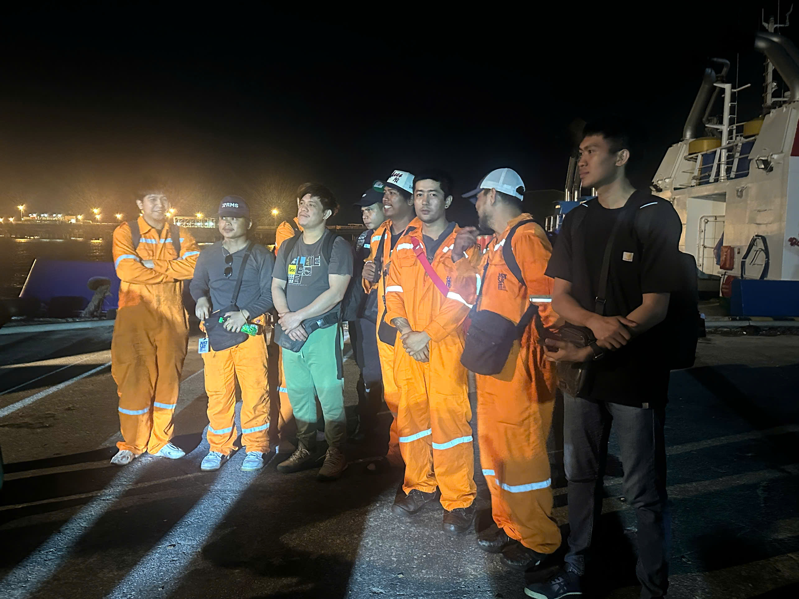 Trong đó, tối 4-11, 12 thuyền viên đầu tiên rời tàu theo lệnh của thuyền trưởng; đến chiều 5-11, 10 thuyền viên còn lại, gồm cả thuyền trưởng, được tàu lai dắt HVS 51.H5 đưa cùng hành lý cập cảng Dung Quất.