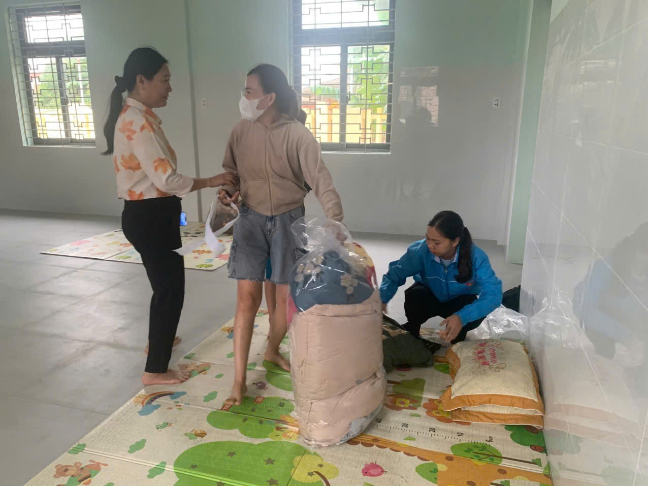 Người dân mang theo chăn mền để ở lại nơi tránh trú