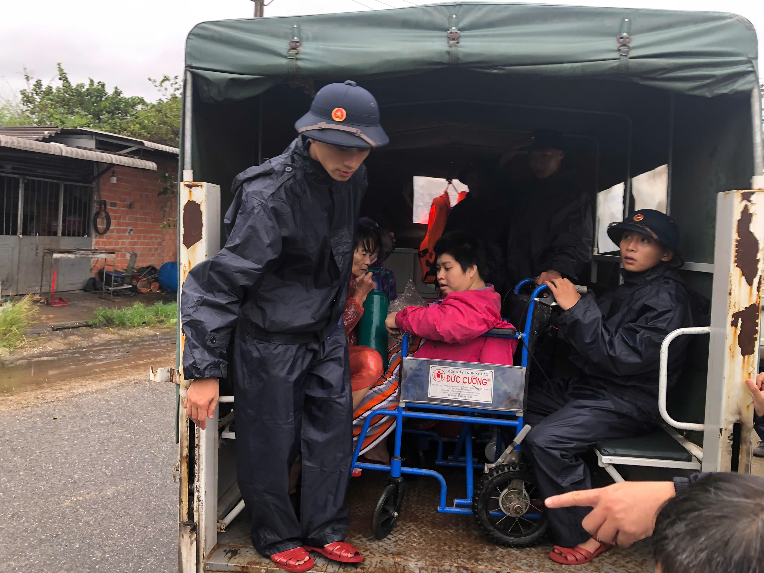 Đưa người dân lên xe đến nơi tránh trú