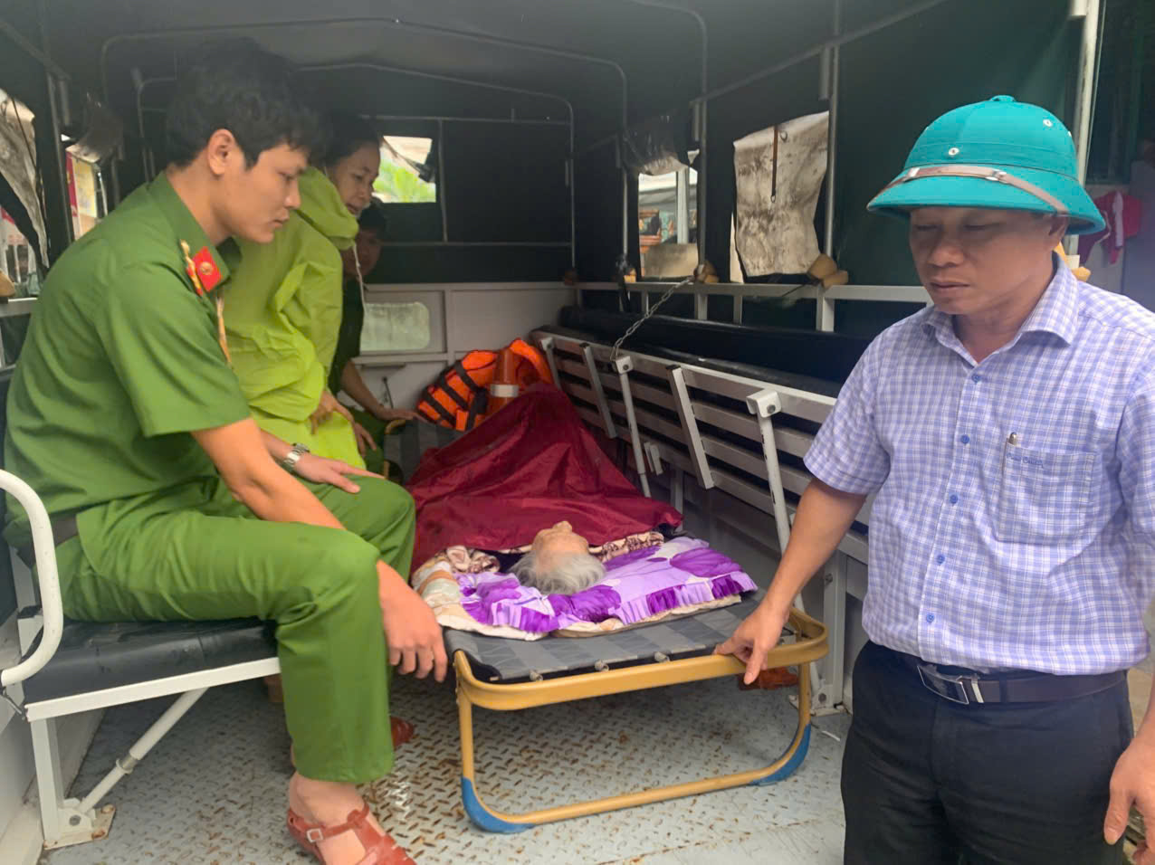 Bà cụ đã được đưa lên xe đến bệnh viện