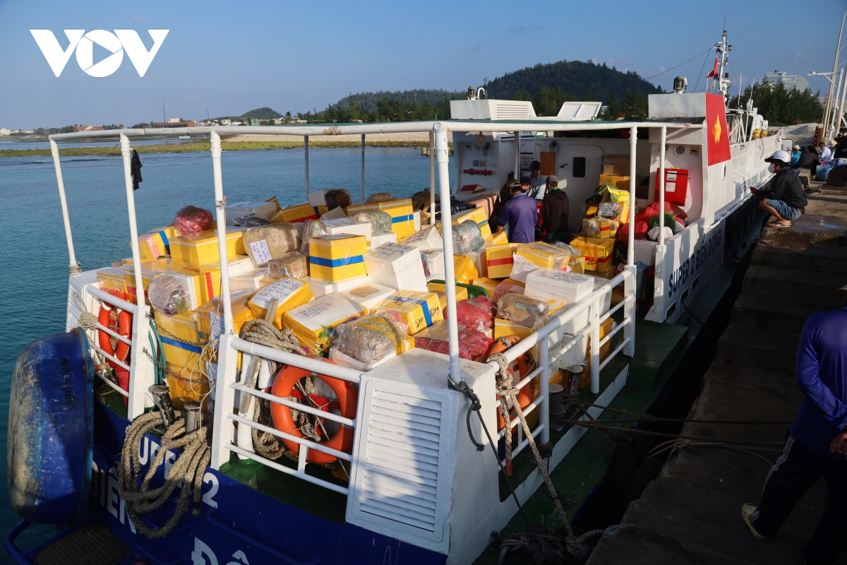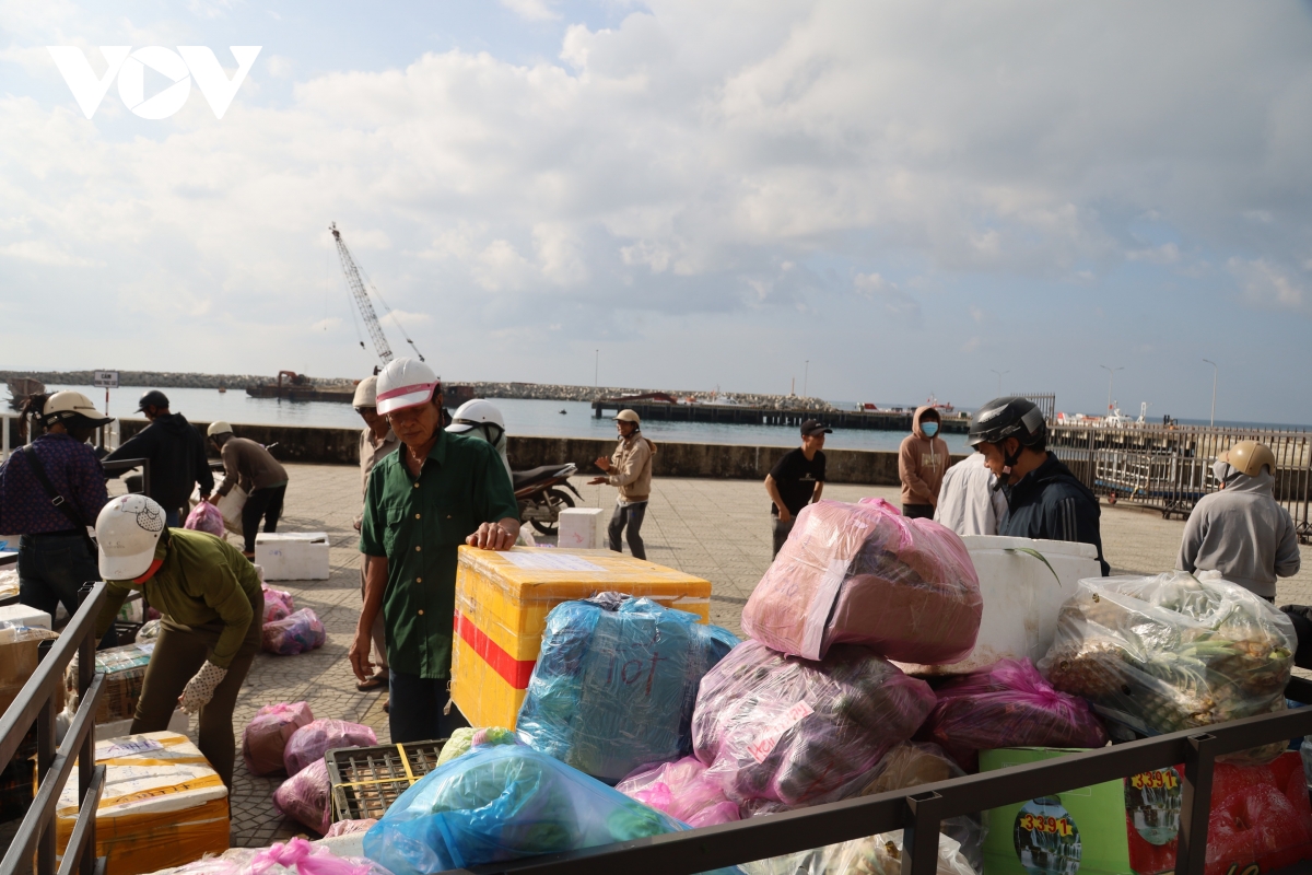 Những ngày này, tại cảng Sa Kỳ, không khí bốc xếp hàng hóa lên tàu hết sức khẩn trương. Từng chuyến tàu vận tải liên tục rời cảng, chở theo lương thực, thực phẩm, bánh kẹo, nước giải khát… ra đảo phục vụ nhu cầu sinh hoạt và mua sắm Tết của người dân Lý Sơn.