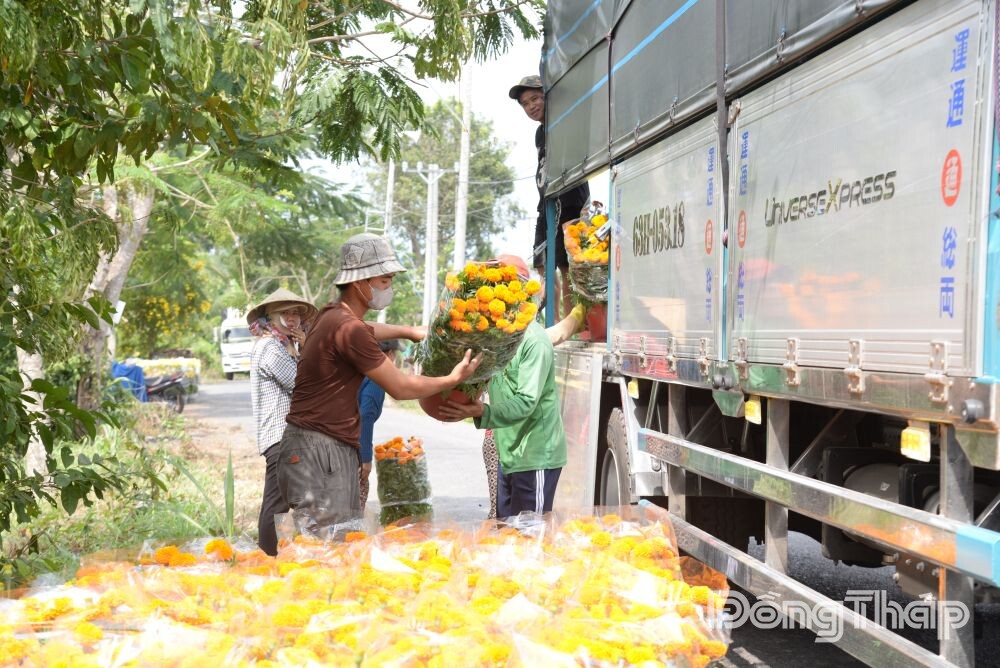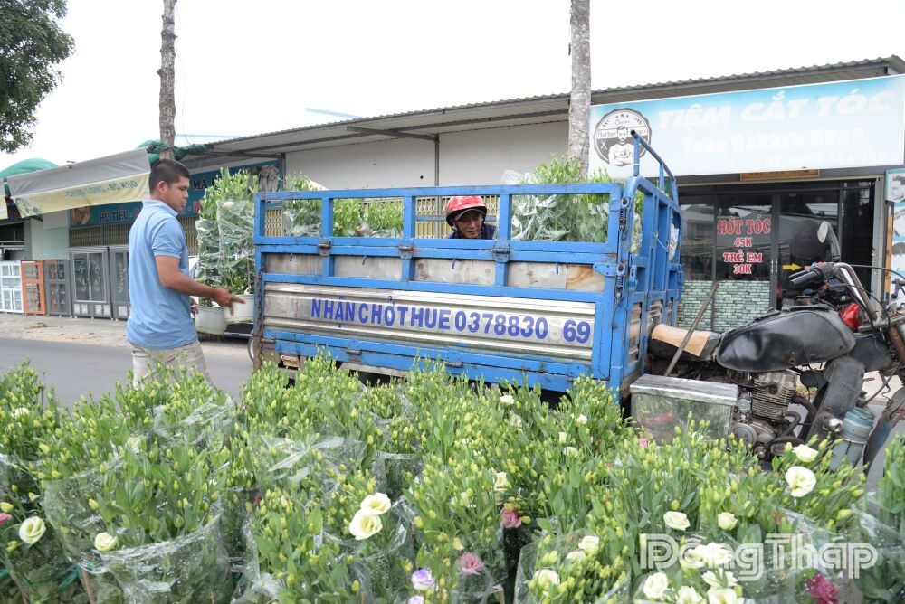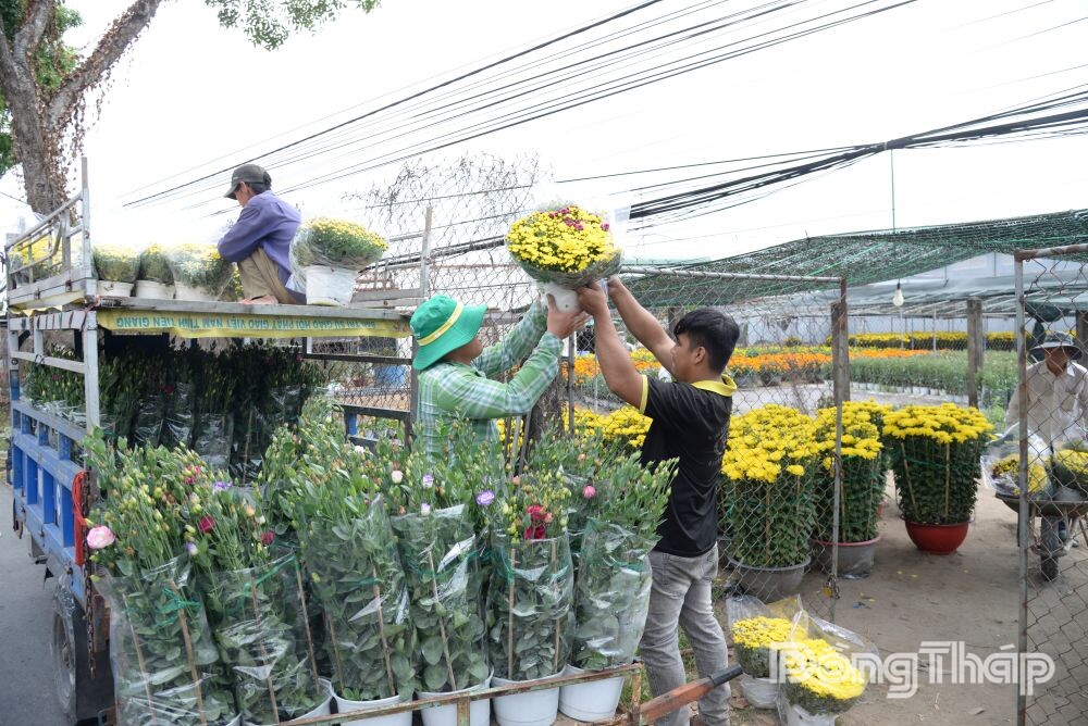 Hoa tết được vận chuyển đến các chợ để tiêu thụ.