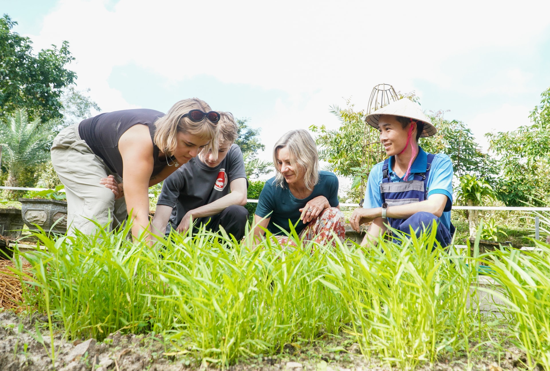 Khi nông trại vận hành ổn định, anh Trần Thanh Hà bắt đầu tính đến giá trị cộng đồng. Trải nghiệm được mở rộng ra ngoài khuôn viên nông trại. Du khách được giao lưu, trò chuyện nhiều hơn với bà con nông dân, tham gia cấy lúa, tỉa đậu, làm bún, chế biến phở sắn…
