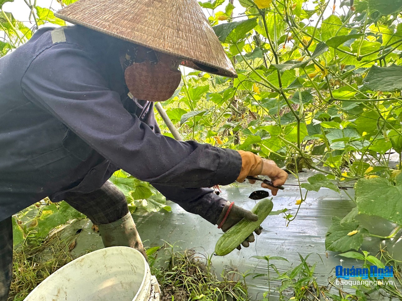 Tại thôn Phú Nhiêu 1, xã Đông Sơn, những ruộng dưa leo đang vào vụ thu hoạch. Dù nắng chưa ráo hẳn sau đợt bão lũ vừa qua, nhưng trên cánh đồng, người dân vẫn tranh thủ hái dưa để kịp giao cho thương lái.