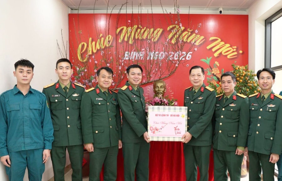 Đoàn Công tác Bộ Tư lệnh Thủ đô Hà Nội tặng quà, chúc Tết Ban Chỉ huy Quân sự phường Hồng Hà.