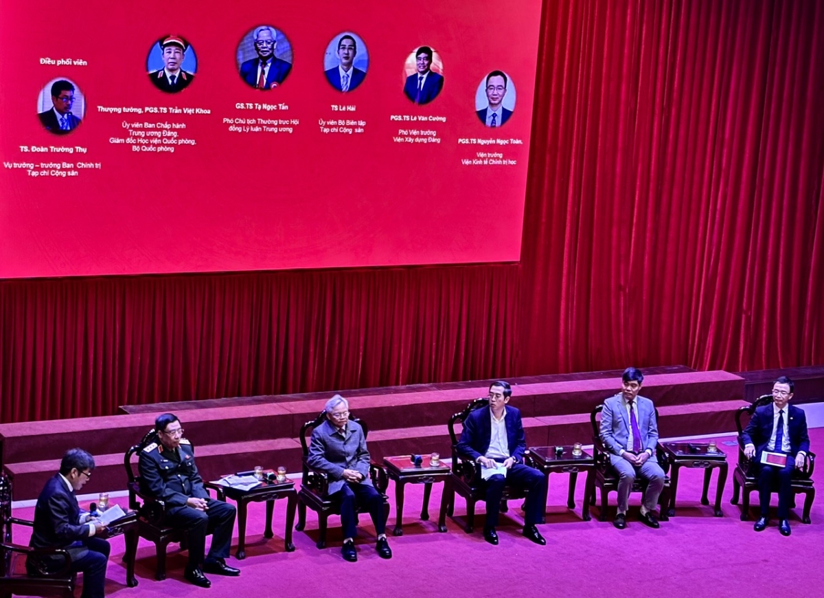 Đoàn chủ trì hội thảo gồm: PGS.TS Đoàn Minh Huấn, Ủy viên Bộ Chính trị, Giám đốc Học viện Chính trị quốc gia Hồ Chí Minh; GS.TS Nguyễn Xuân Thắng, Chủ tịch Hội đồng lý luận Trung ương; GS.TS Lê Văn Lợi, Ủy viên Trung ương Đảng, Chủ tịch Viện Hàn lâm khoa học và xã hội Việt Nam; PGS.TS Dương Trung Ý, Ủy viên Trung ương Đảng, Tổng biên tập Tạp chí Cộng sản.