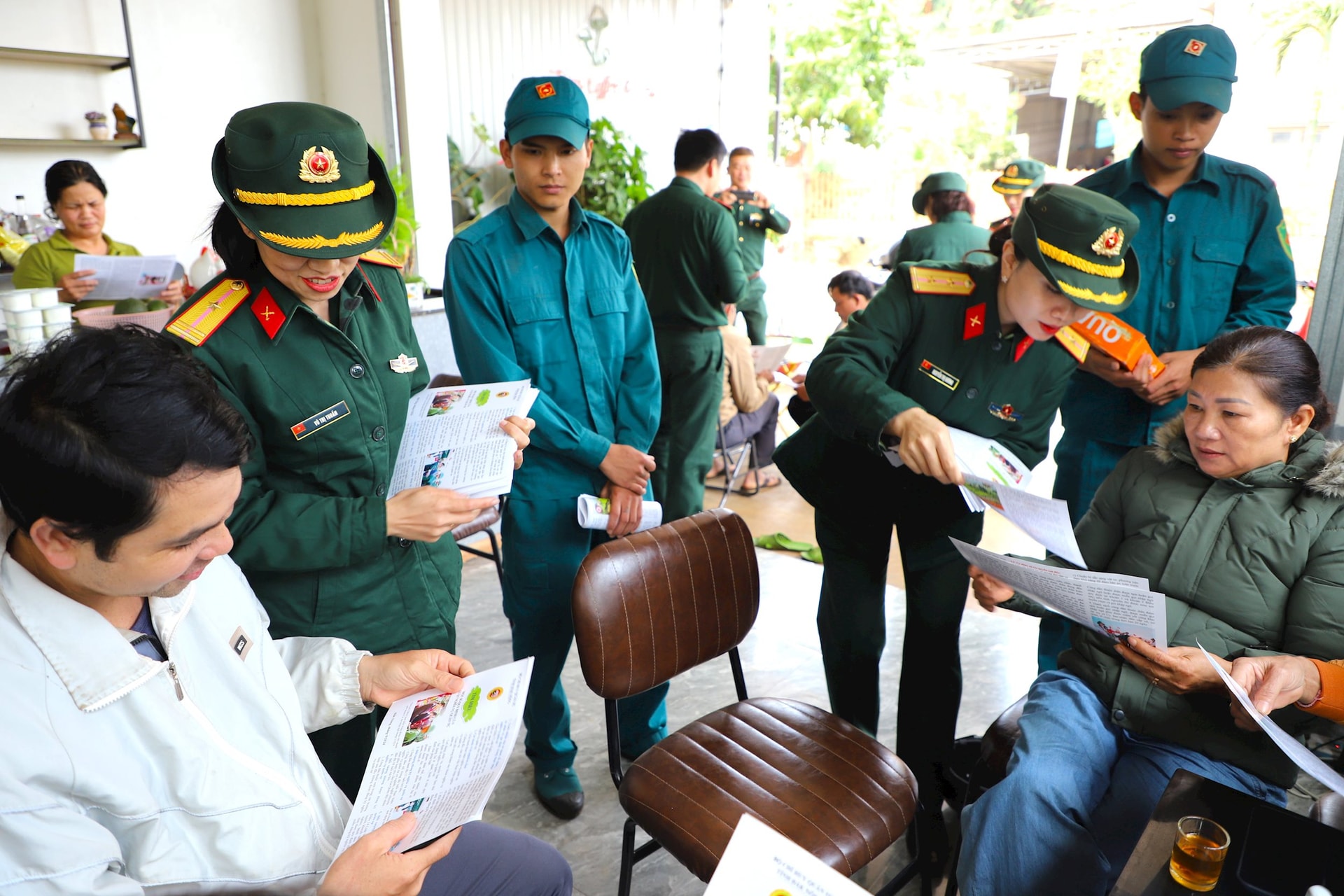 Cán bộ, chiến sĩ và thành viên Ban Chỉ đạo Đề án 1371 phối hợp với lực lượng địa phương tổ chức tuyên truyền trực tiếp các nội dung pháp luật và phát tờ rơi, tờ gấp tại xã Thuận Hạnh