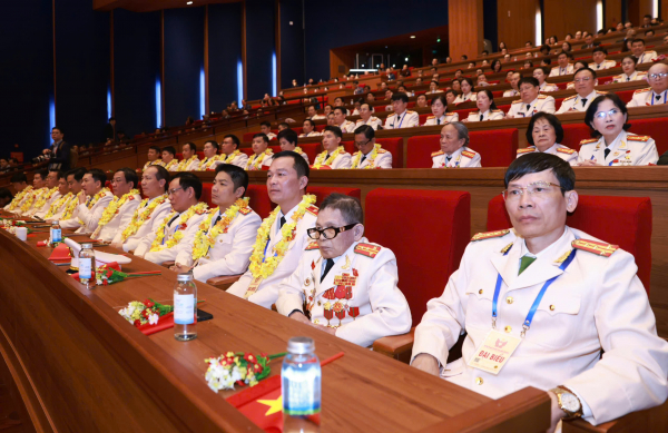 Tổng Bí thư Tô Lâm, Thủ tướng Phạm Minh Chính, Thường trực Ban Bí thư Trần Cẩm Tú với các đồng chí lãnh đạo, đại biểu chụp ảnh với Đoàn đại biểu CAND dự đại hội.