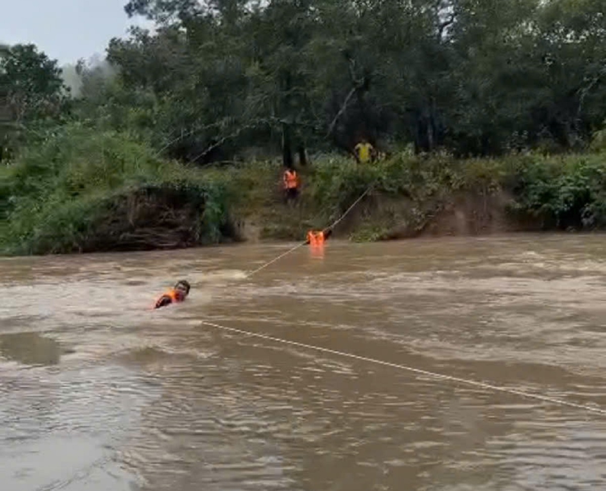 Lực lượng chức năng đưa nhân viên đo đạc tại dự án hồ Ka Pét ra khỏi vùng cô lập