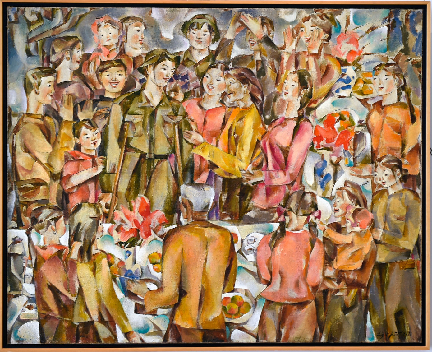 Đón thương binh về làng được hoàn thiện năm 1976, với chất liệu sơn dầu trên toan.