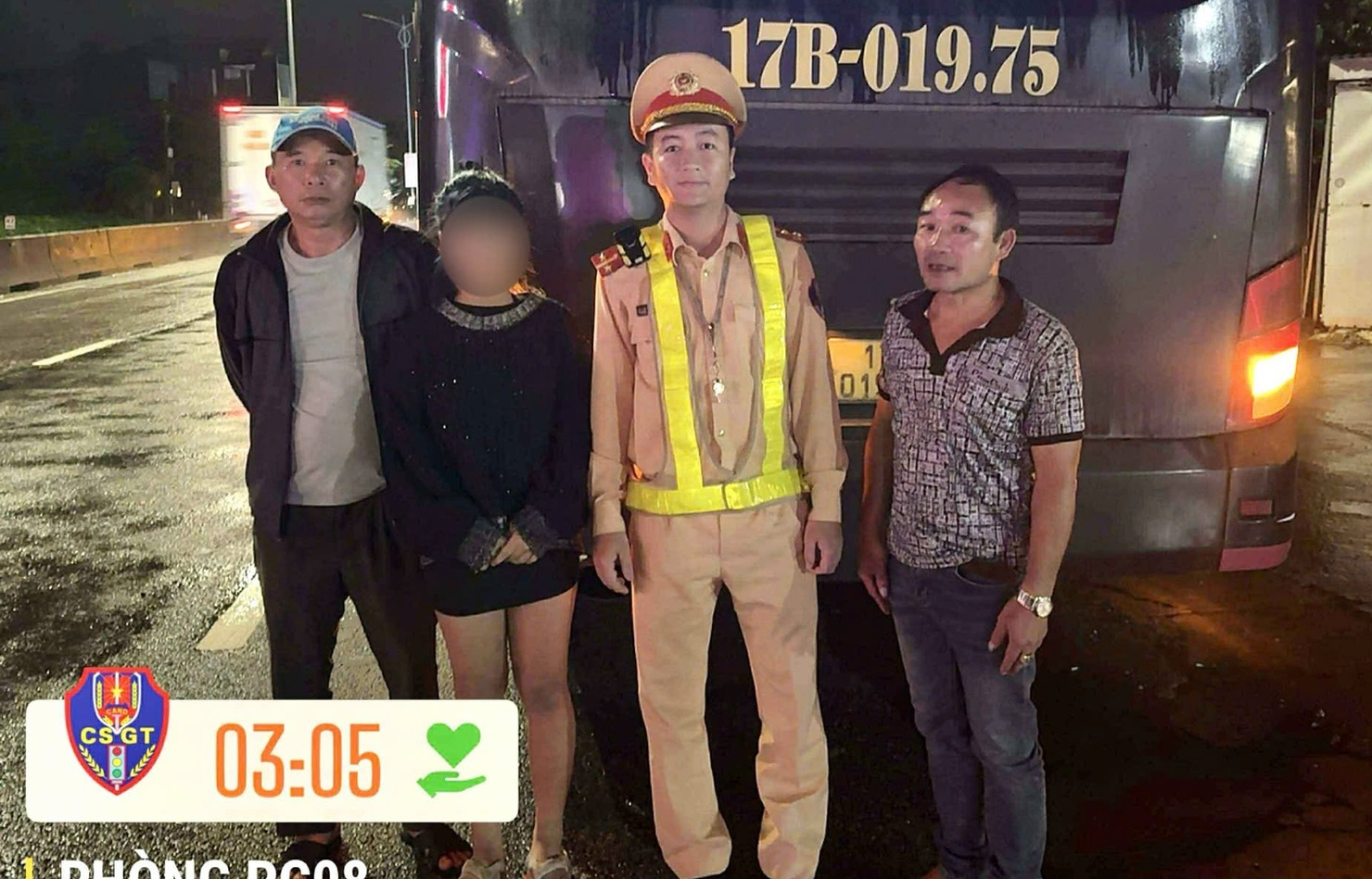 Vào 3h sáng cùng ngày, đội CSGT đường bộ số 1 - Phòng CSGT Công an tỉnh Quảng Ngãi trong quá trình tuần tra, kiểm soát trên QL1 đã tiếp nhận tin báo của tài xế xe khách BKS 17B-019.75 về việc trên xe có cháu gái quê Quảng Ngãi cần được giúp đỡ.