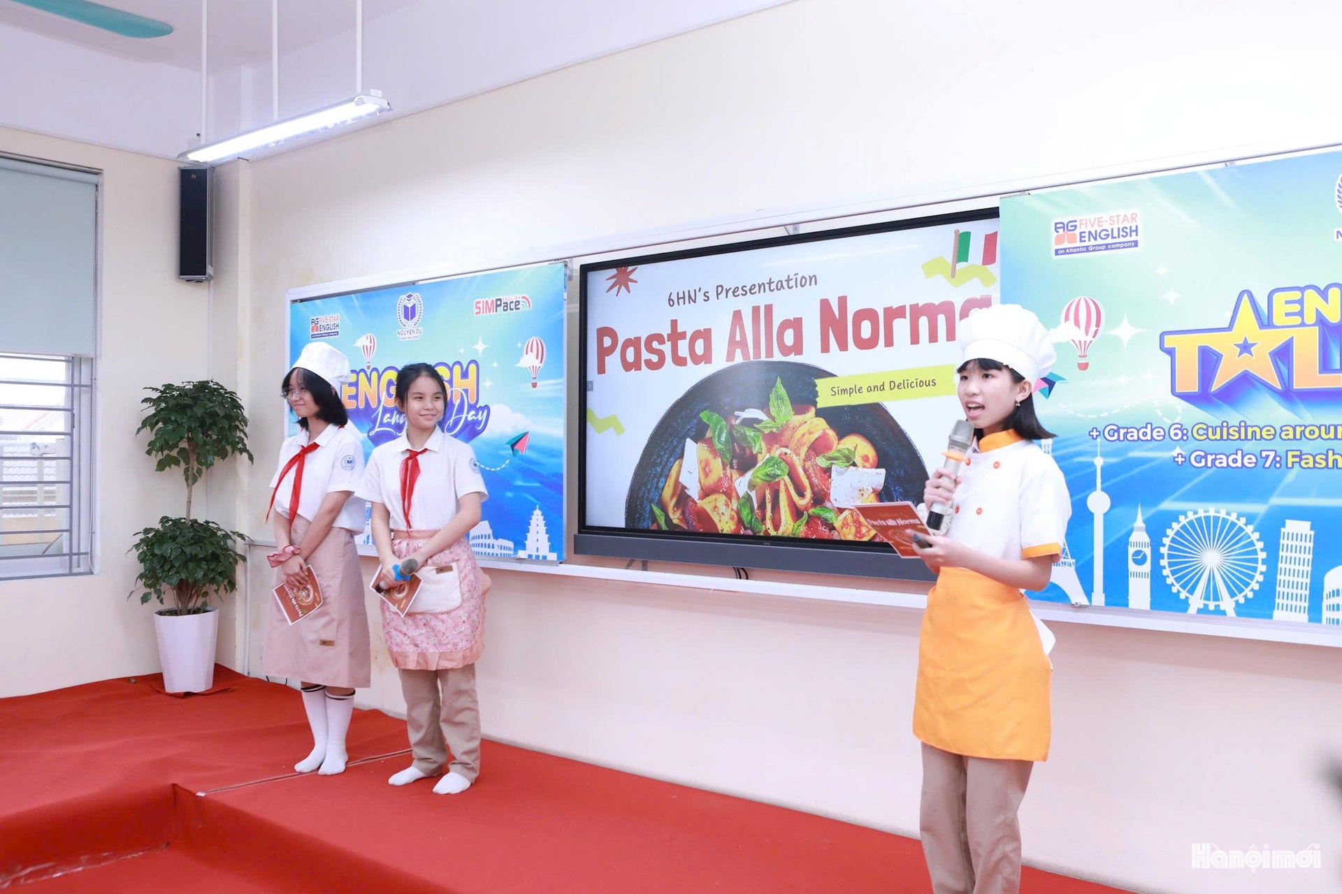 Học sinh Trường THCS Nguyễn Du với tiết mục văn nghệ đặc sắc bằng tiếng Anh. Ảnh: Đình Tuệ