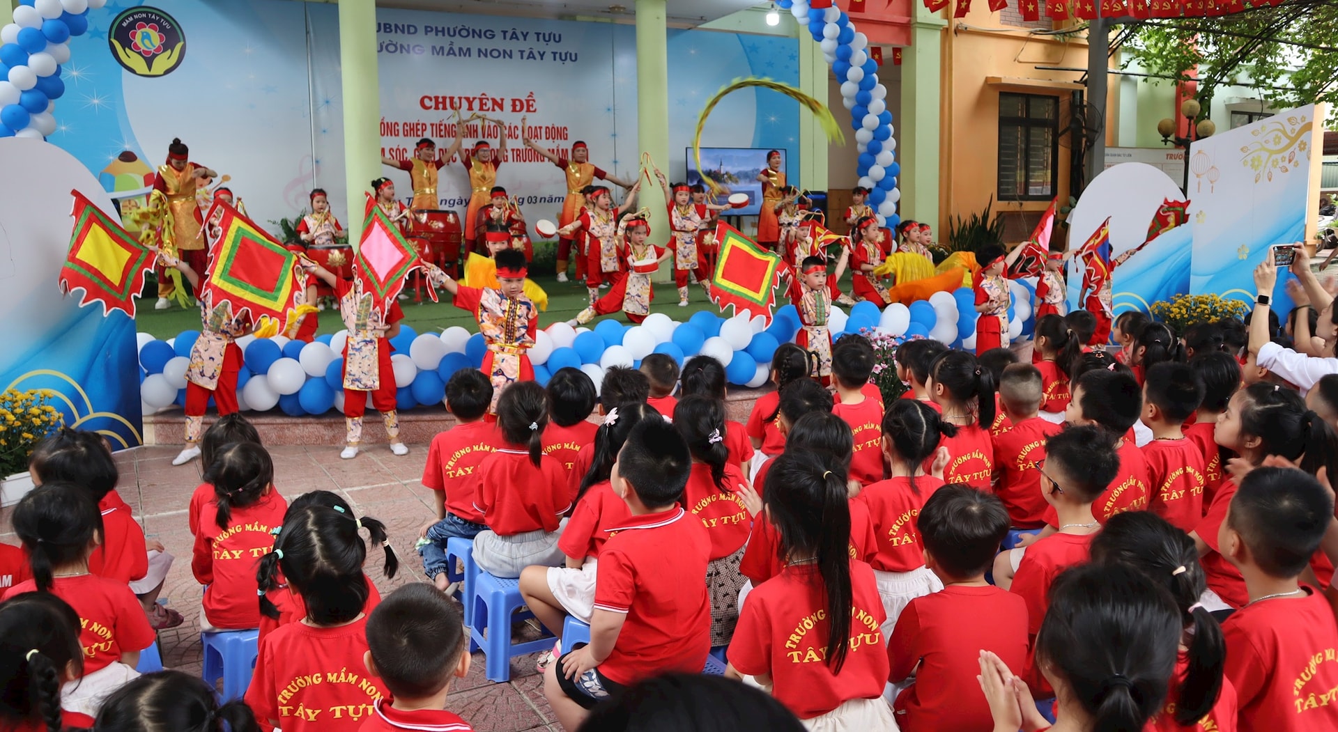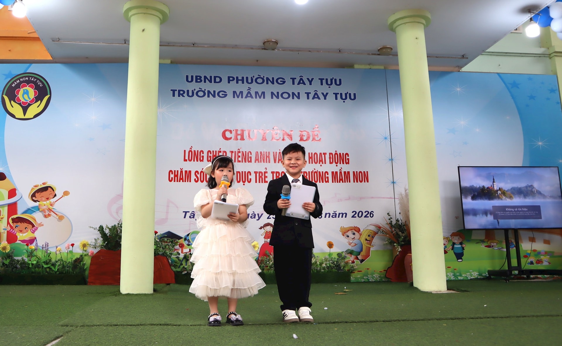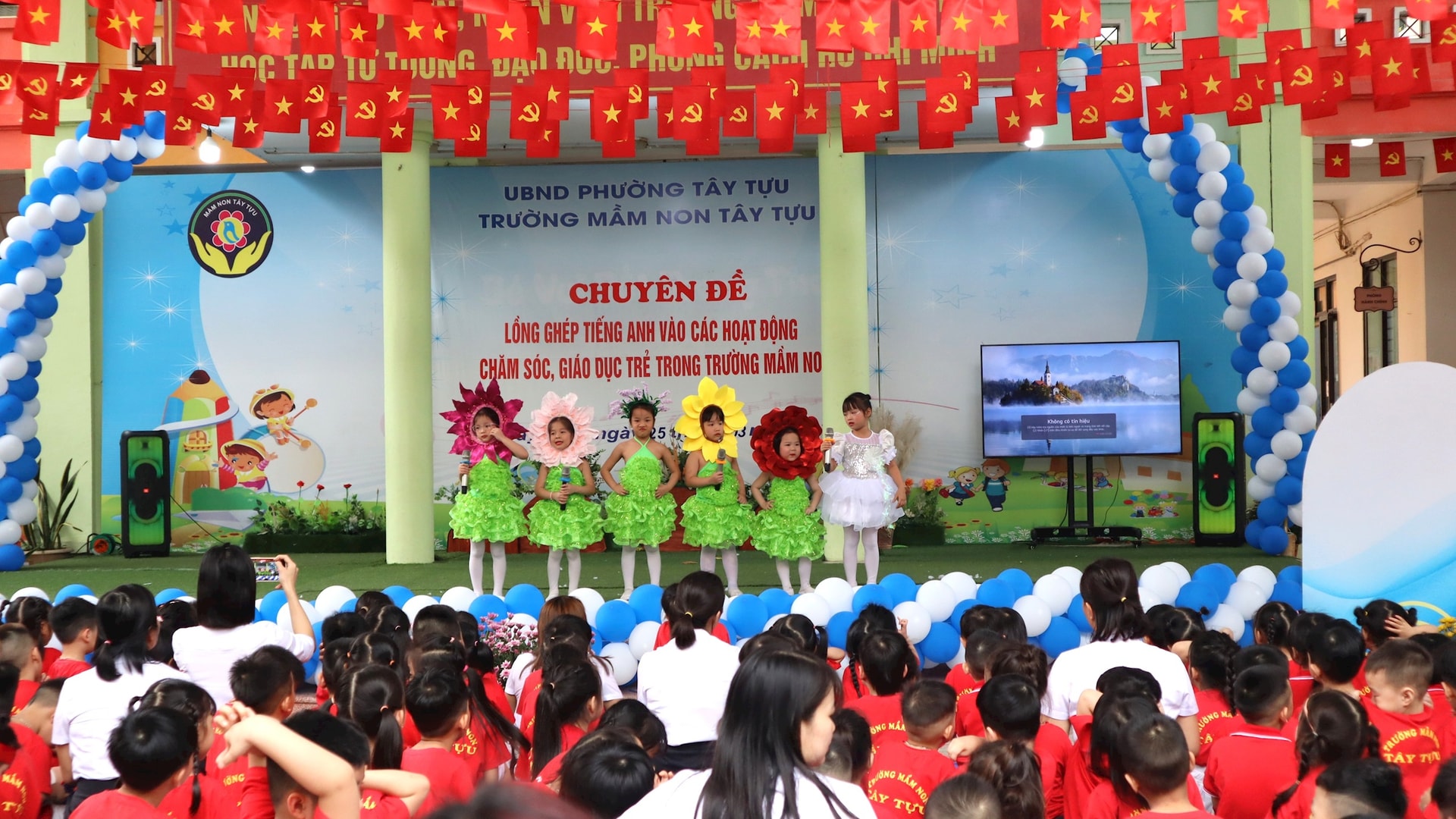 Tại buổi sinh hoạt chuyên đề “Lồng ghép tiếng Anh vào các hoạt động chăm sóc, giáo dục trẻ trong trường mầm non” do UBND phường Tây Tựu giao Trường Mầm non Tây Tựu tổ chức ngày 25-3, các đại biểu, giáo viên và phụ huynh đã được chứng kiến những tiết học sinh động, sáng tạo, trong đó tiếng Anh được đưa vào một cách tự nhiên, phù hợp với tâm lý lứa tuổi.