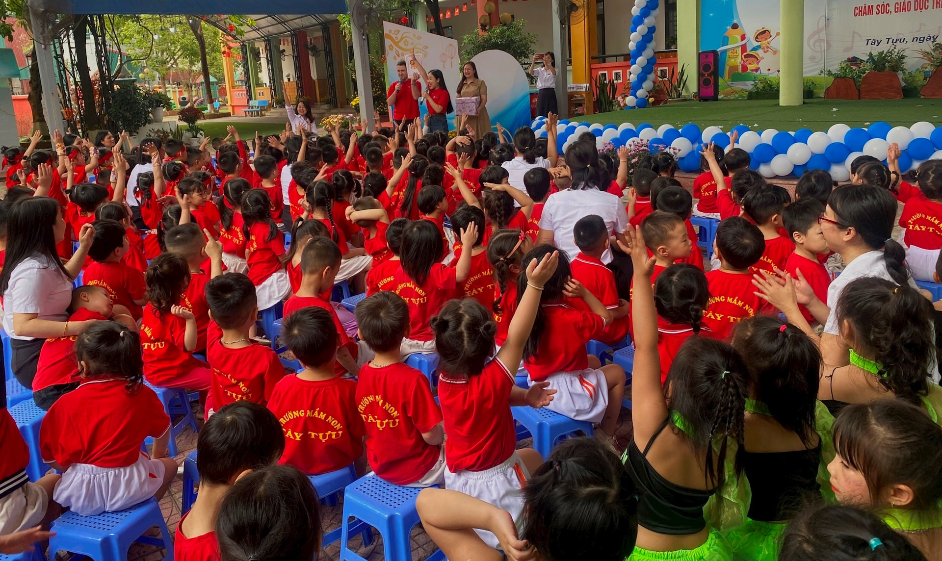 “Thực hiện chủ trương đưa tiếng Anh trở thành ngôn ngữ thứ hai trong trường học, Trường Mầm non Tây Tựu đang từng bước lồng ghép tiếng Anh vào các hoạt động chăm sóc, giáo dục trẻ. Nhà trường không nặng về ngữ pháp hay kiểm tra đánh giá, mà coi đây là công cụ giao tiếp được lồng ghép trong các hoạt động hằng ngày của trẻ”, cô Ngọc cho biết.