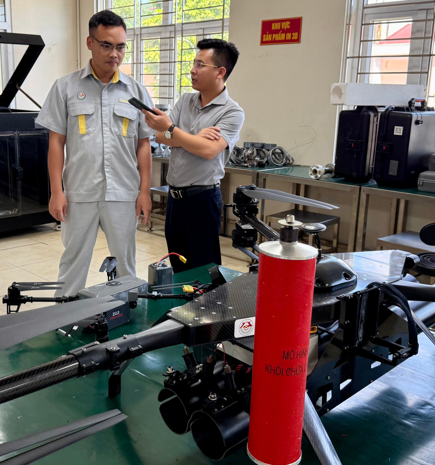 Kỹ sư của Nhà máy giới thiệu quá trình nghiên cứu, sản xuất và ứng dụng của UAV. Ảnh: Minh Tuấn