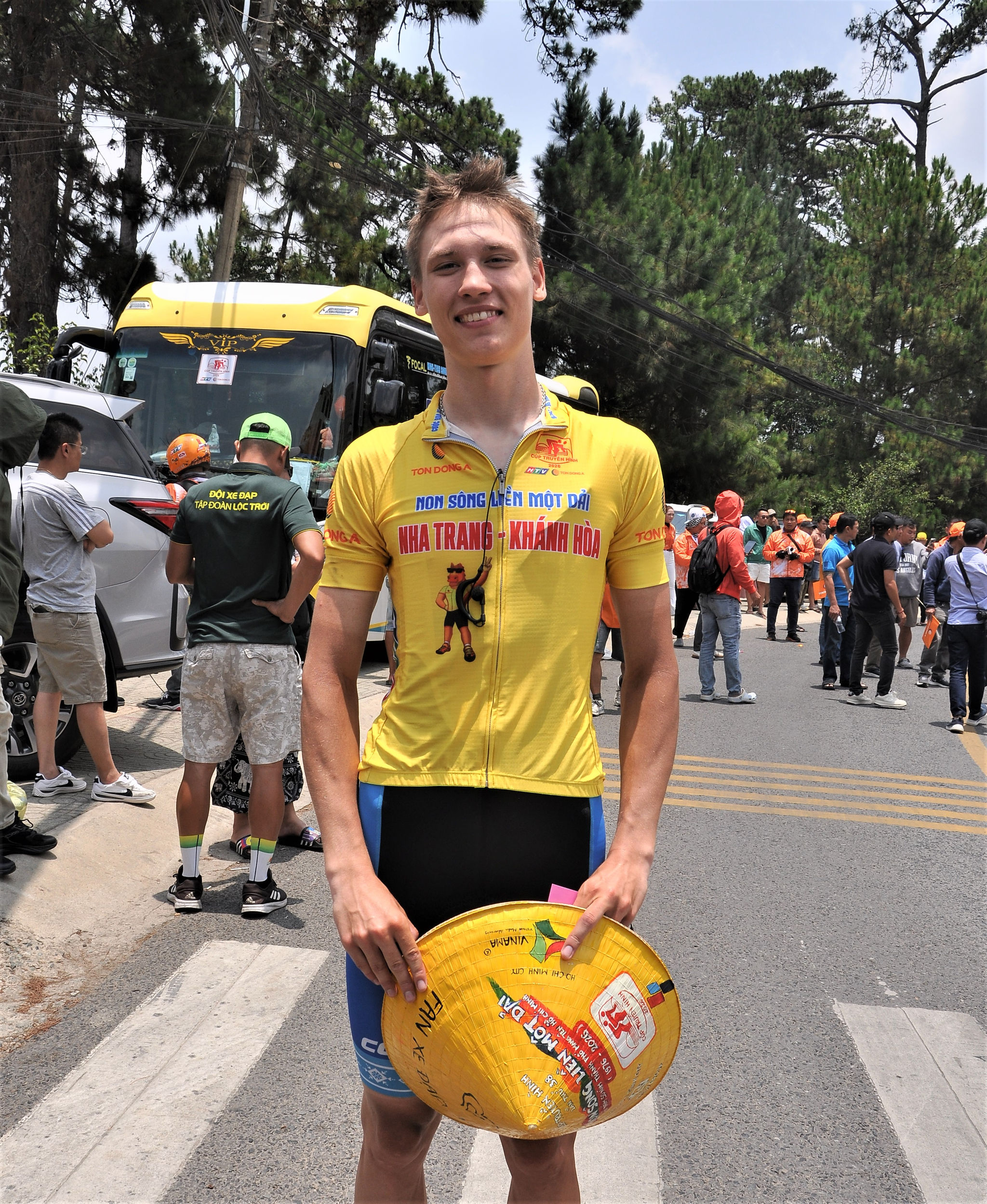 Tay đua Sergei Kulikov của Đội Lộc Trời - An Giang về đích đầu tiên chặng 16 từ Nha Trang lên Đà Lạt