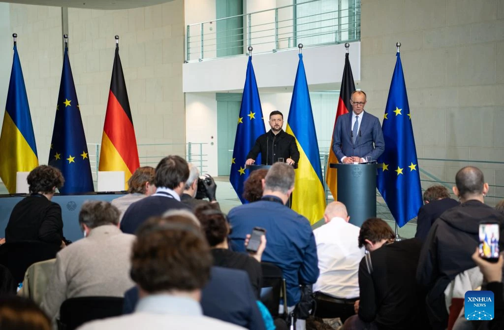 Thủ tướng Đức Friedrich Merz và Tổng thống Ukraine Volodymyr Zelensky đã nhất trí nâng cấp quan hệ song phương lên mức đối tác chiến lược. Ảnh: Tân Hoa Xã