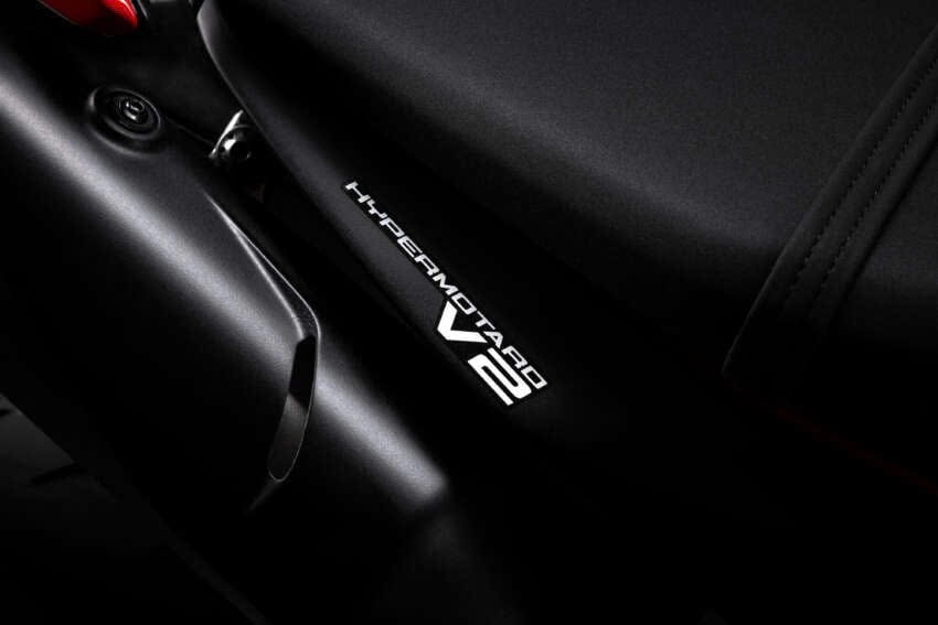 Về diện mạo, Hypermotard V2 thể hiện DNA motard đặc trưng của Ducati với cụm đèn pha và đèn hậu lấy cảm hứng từ mẫu Hypermotard 1100 đầu tiên. Cặp ống xả đặt cao dưới yên xe tạo dáng thể thao, đồng thời giúp tối ưu trọng tâm. Các chi tiết thân xe được thiết kế sắc nét, mang lại cảm giác năng động và mạnh mẽ.