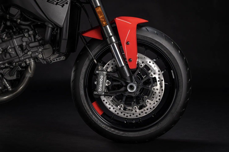 Yên xe được thiết kế hẹp hơn, chiều cao tiêu chuẩn 815 mm, đi kèm yên thấp phụ trợ cho người nhỏ bé, trong khi tay lái nâng cao hơn giúp tư thế tự nhiên và dễ kiểm soát. Lốp tiêu chuẩn là Pirelli Diablo Rosso IV với kích thước trước 120/70, sau 180/55. Thiết kế tổng thể của Monster 2026 vẫn giữ được nét đặc trưng quen thuộc của dòng Monster, chỉ tinh chỉnh một số chi tiết nhỏ để sắc sảo hơn, phù hợp với những ai yêu thích sự mạnh mẽ, đơn giản nhưng vẫn thời thượng.