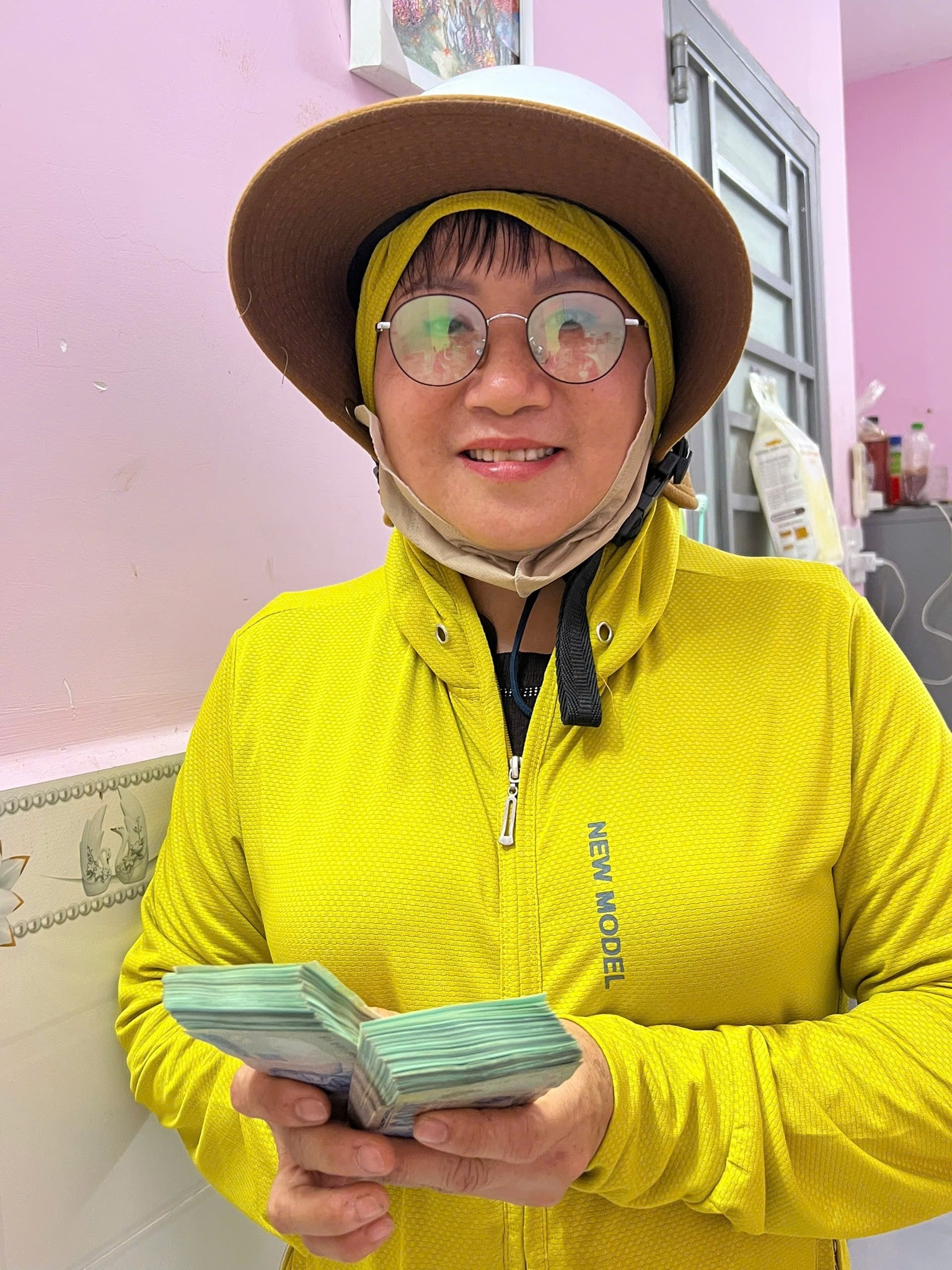 Bà Tưởng nhận 100 triệu đồng từ người đàn ông giấu danh tính. Ảnh: Phong Bụi.