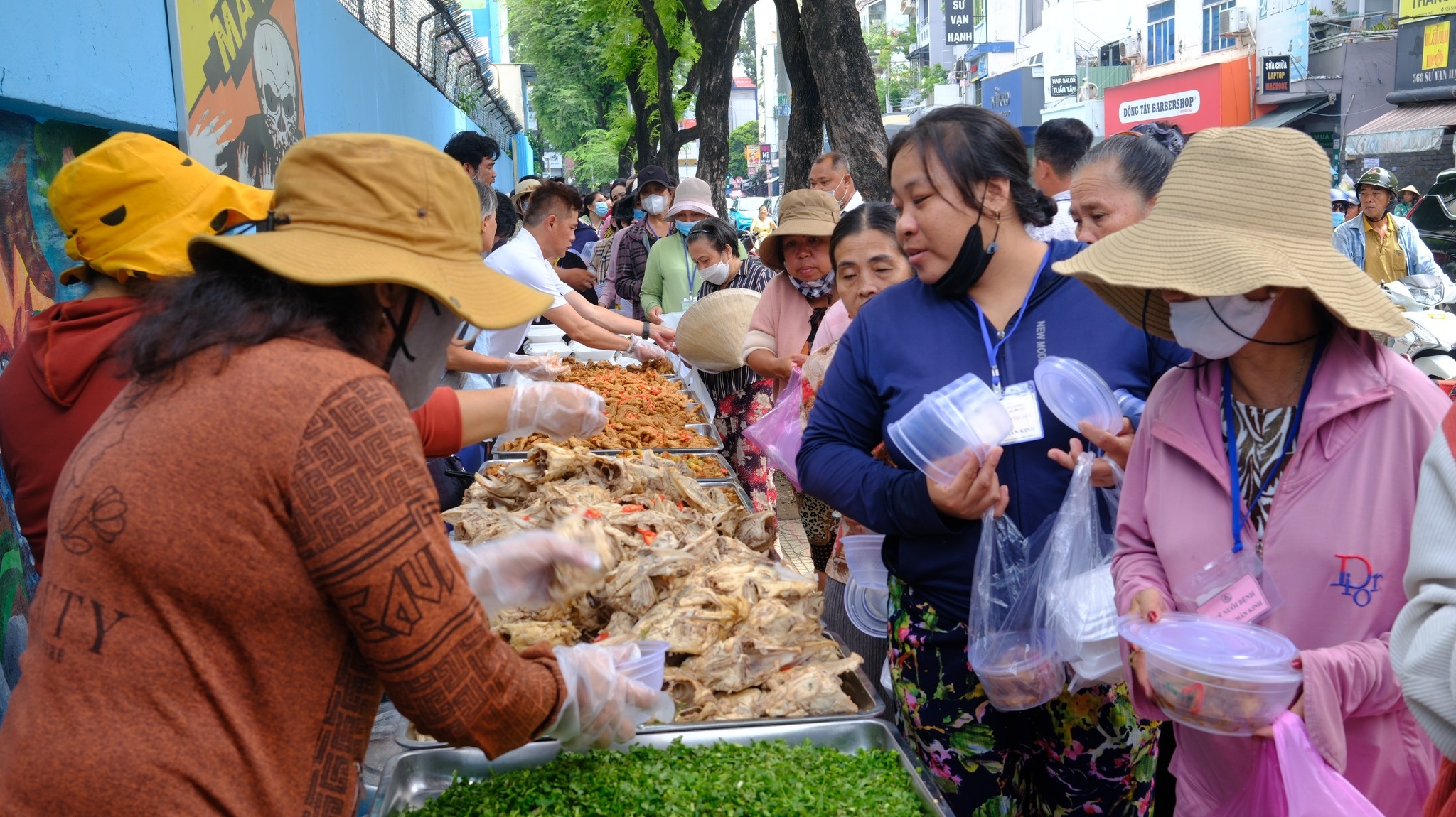 "Người đó nói rằng từng đi ngang bếp tôi nhiều lần, thấy tôi và đội nấu đủ món, chia liên tục cho người bệnh và thân nhân nên muốn hỗ trợ", bà kể lại.