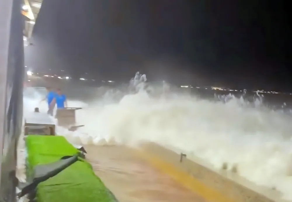 Sóng đánh tràn vào một quán ăn đêm 27-11.
