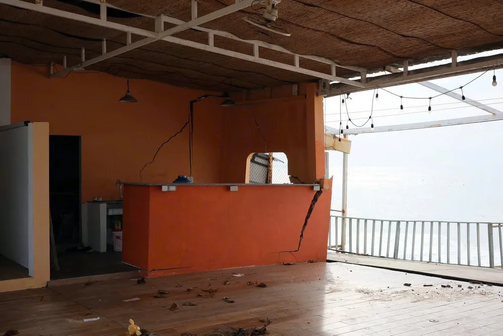 Nền một quán ăn bị nứt gãy nghiêm trọng.