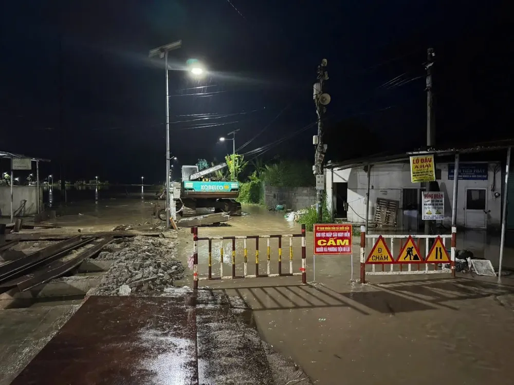 Tối 16-11, đại diện Chi nhánh khai thác đường sắt Phú Khánh cho biết, do mưa lớn từ chiều cùng ngày, một số đoạn đường sắt thuộc khu gian Ngã Ba - Cam Thịnh Đông, xã Nam Cam Ranh, tỉnh Khánh Hòa bị ngập, không thể lưu thông.