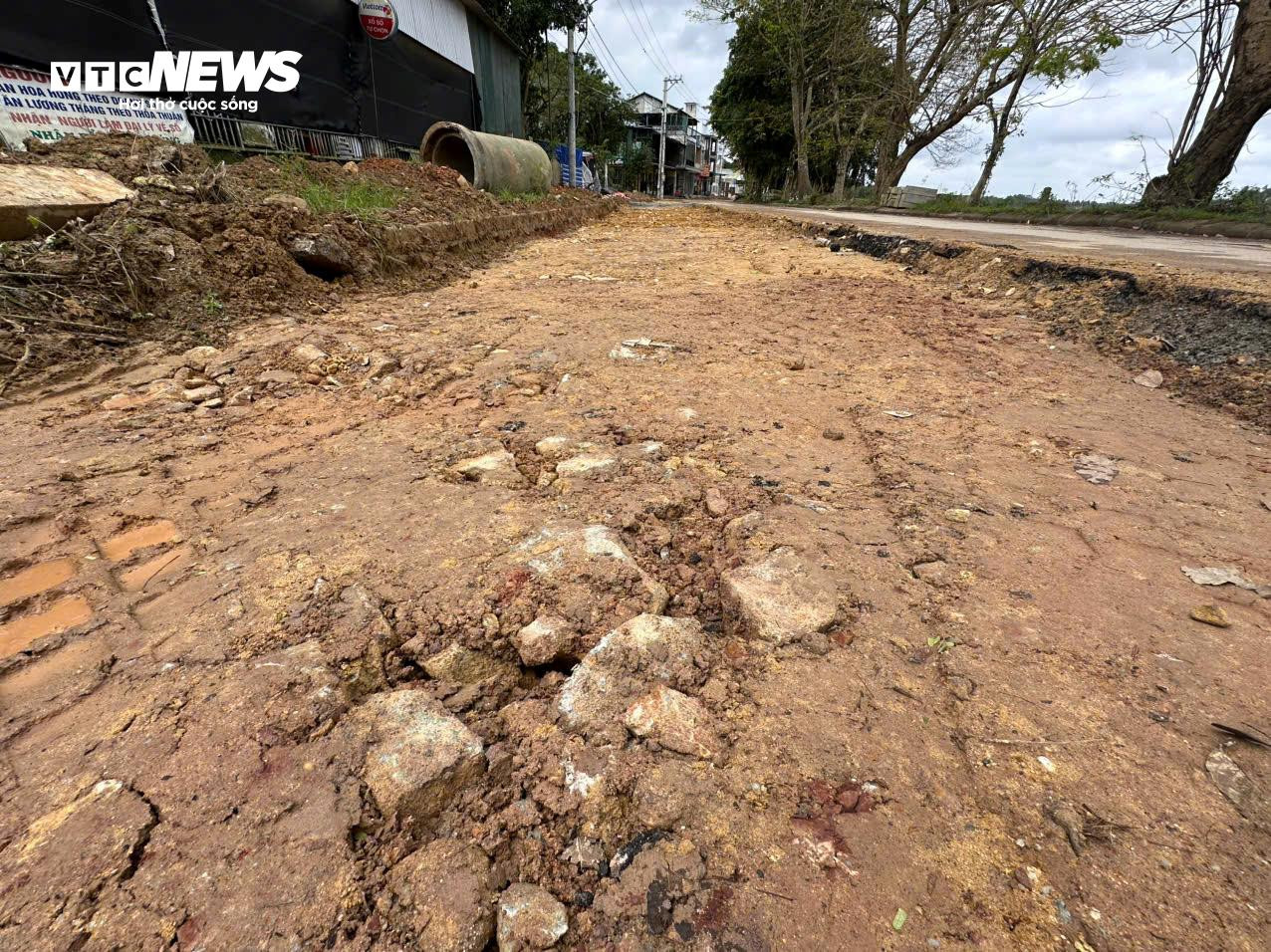 Ghi nhận của PV Báo Điện tử VTC News từ ngày 12 - trưa 13/12 tại dự án nêu trên đoạn qua đường Sông Bồ giao với đường Đinh Bộ Lĩnh (phường Hương Trà, TP Huế) một số đoạn đường được đổ đất làm mặt đường và lu lèn. Tuy nhiên, dưới nền đường là đất phong hóa, lẫn rất nhiều đá hộc, có những viên đá khá to nhưng vẫn được lu lèn xuống nền đường nằm lẫn với đất.