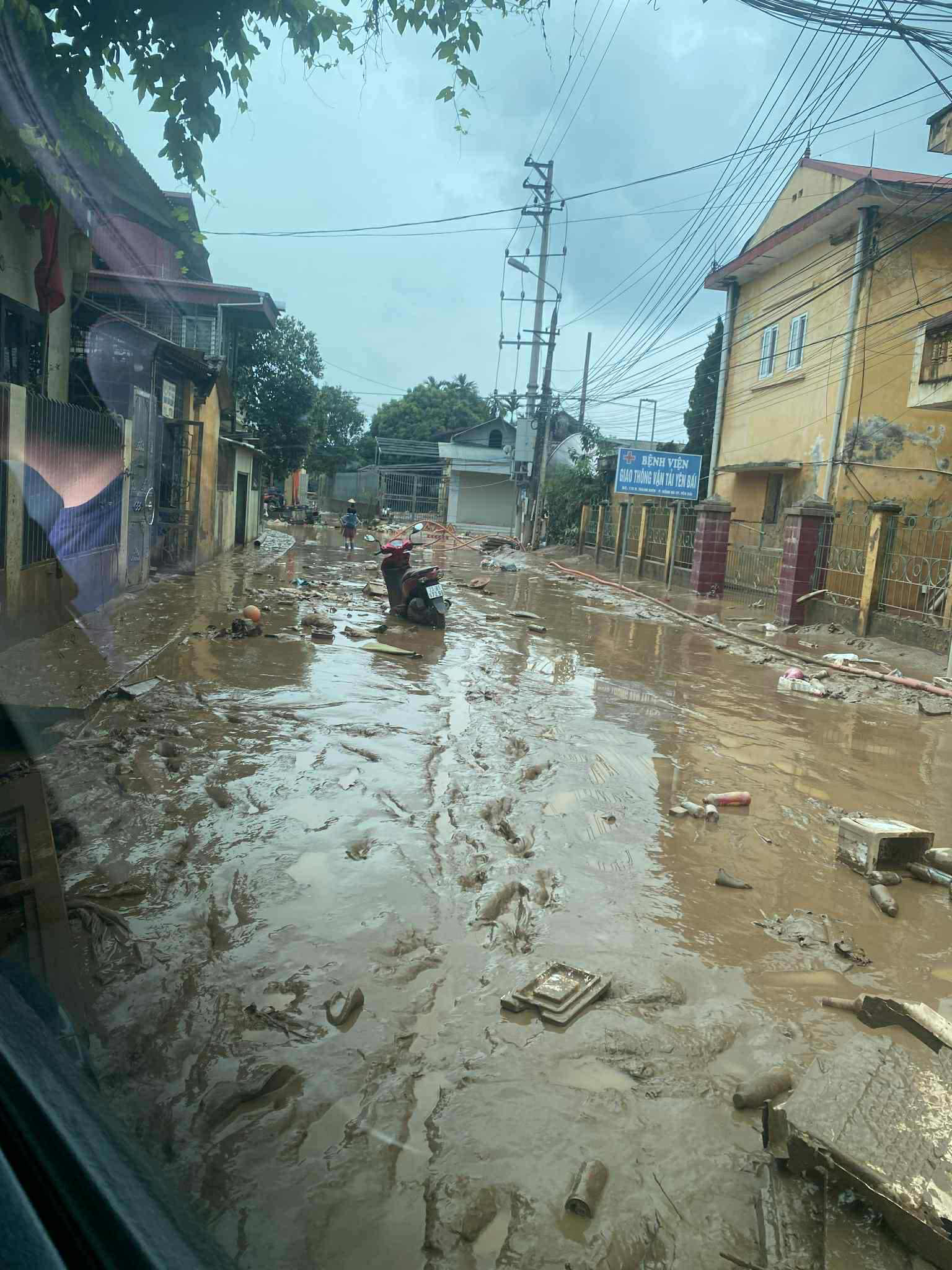 Cảnh ngập sâu ở phường chị Lê Vân sinh sống vì bão số 10 và bùn, rác ngổn ngang khi nước rút đi.